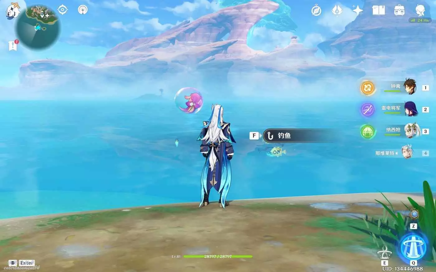 原神 (Genshin Impact) 4.6楓丹新增釣魚點位置分享 24 4 月 2024-04-24 廣告 作者:居宇 來源:米遊社論壇 4.6版本開啟了楓丹南部的諾斯托伊區,新增一個釣點。(獨立地圖「舊日之海」為水下地圖,無釣點) 釣點名—佩特莉可鎮南側小島 位置 可釣魚種 海濤斧槍魚、波波心羽鱸、烘烘心羽鱸、維護機關·初始能力型、維護機關·水域清理者、維護機關·姿態控制者、維護機關·澄金領隊型。 可用魚餌 甘露餌、酸桔餌、維護機關頻閃誘餌。