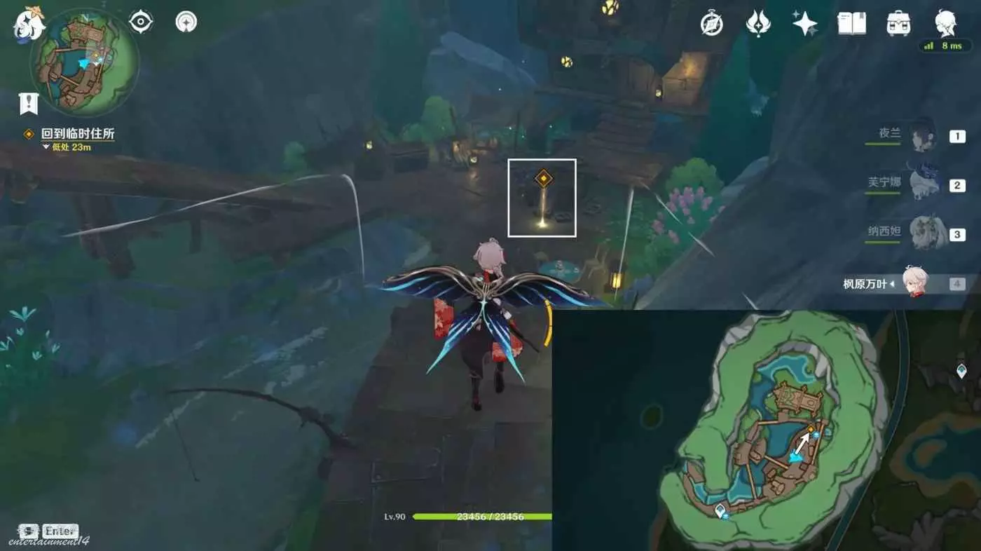 傳送白淞鎮錨點,往地圖的東北方向飛,前往上層平台