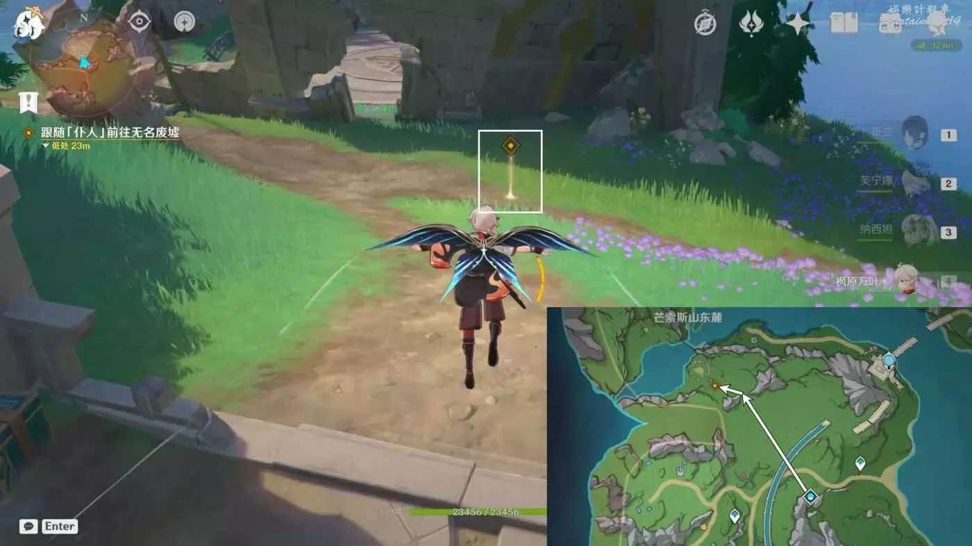 傳送秋分山西側錨點,往地圖的西北方向飛