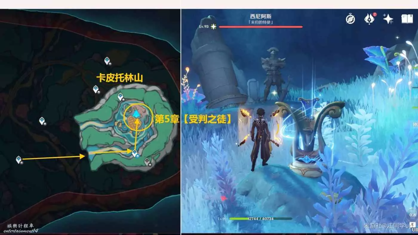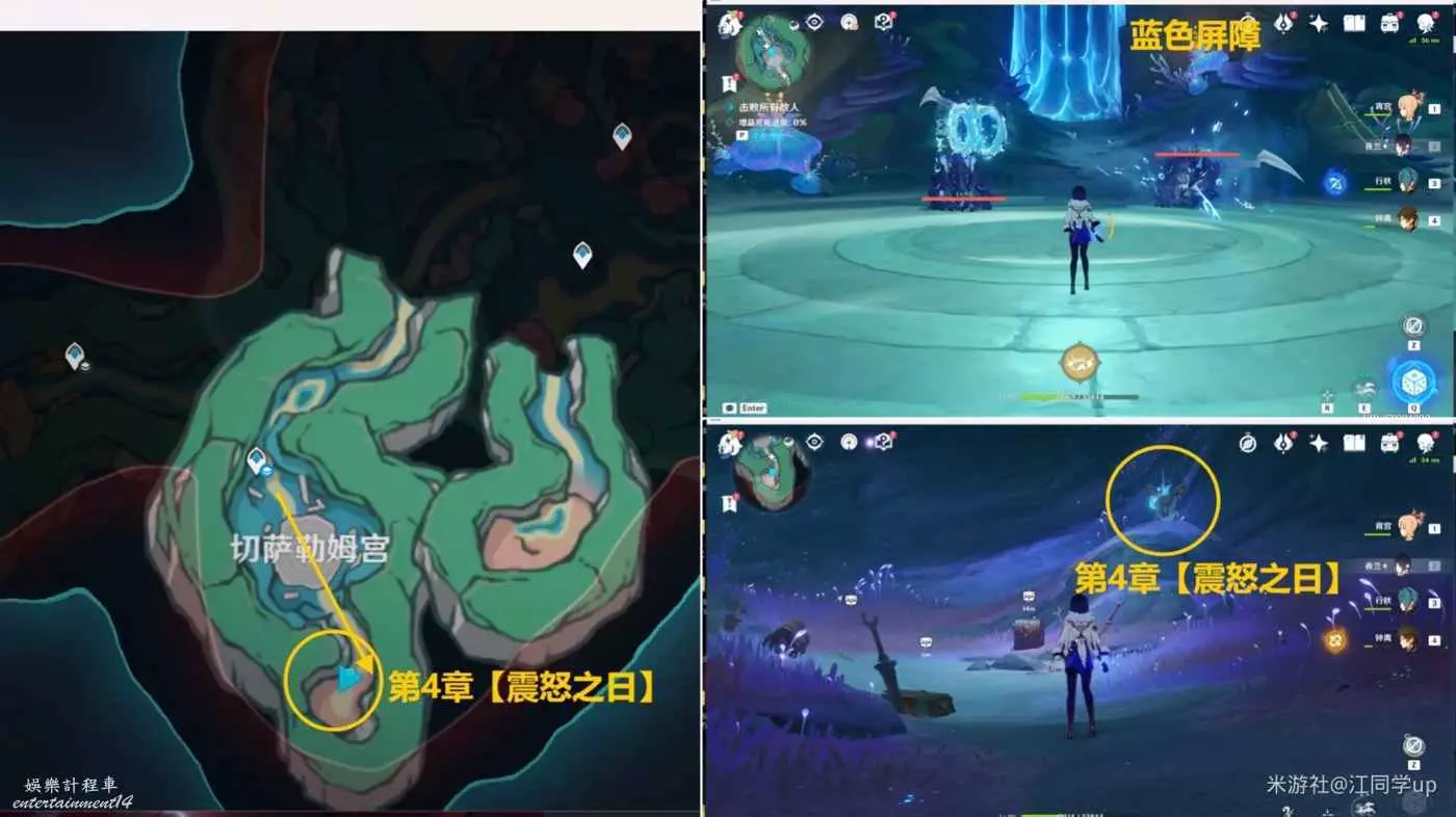 (4)挑戰完龍蜥後,下圖位置的【藍色屏障】就會打開,然後進去,最裡面山洞裡就是第4章【震怒之日】樂章和1華麗1珍貴1奇饋寶箱