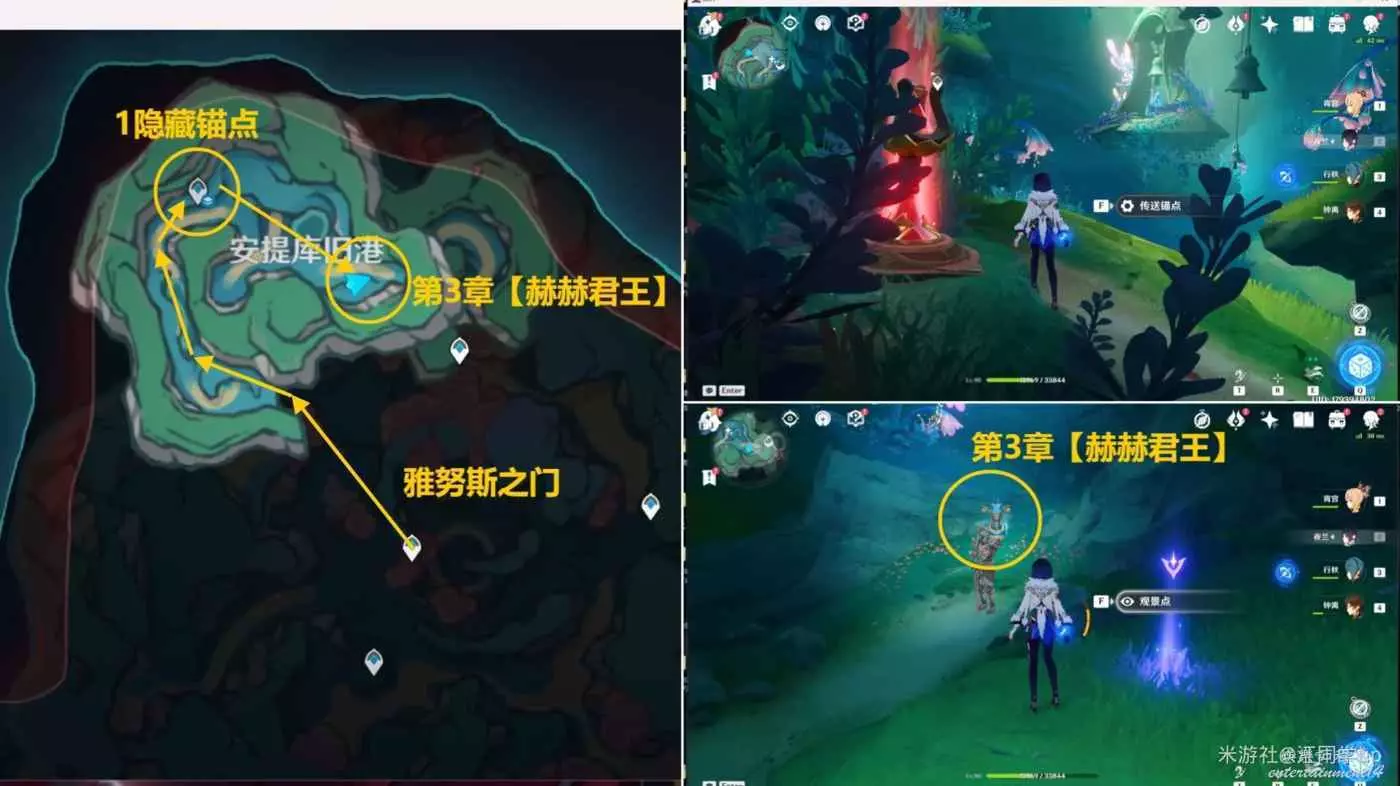 (1)下圖位置的【2隱藏錨點】,同上面的【1隱藏錨點】,沒解鎖之前不會在地圖上顯示,然後去和前面的【無名的石像】對話