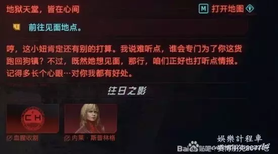 回到任務中,天真的內萊沒想到組織會派她去搞恐怖襲擊,她對上次所犯的錯感到後悔(後文會解釋),想去彌補,所以委託V去破壞掉馬上要進行的恐怖襲擊,隨後給了V一個晶片。