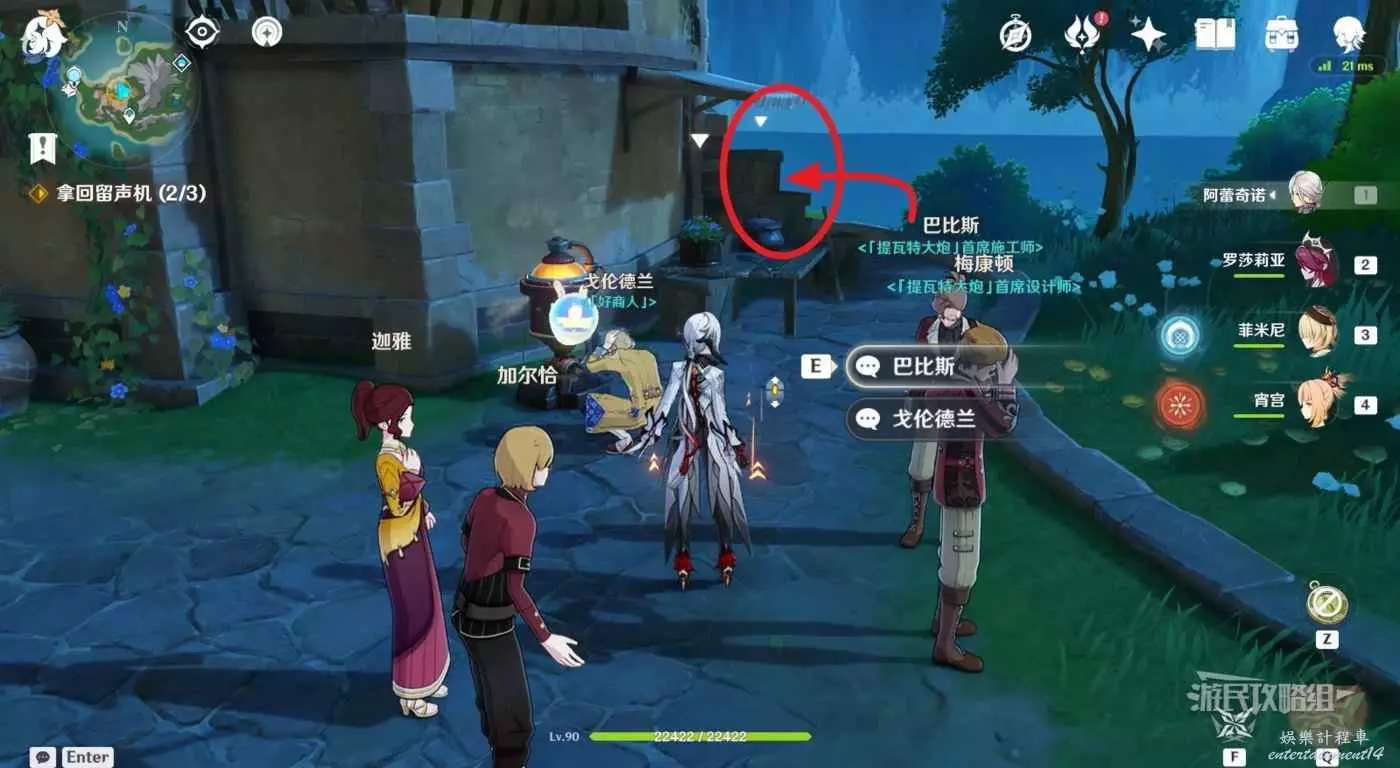 看完再佩特莉可鎮的一大段劇情後,在下圖所示紅圈位置拿到三個留聲機。注意拿完之後有可能不會自動觸發下一個目標,往附近的圓形廣場方向走一點就能自動觸發劇情。