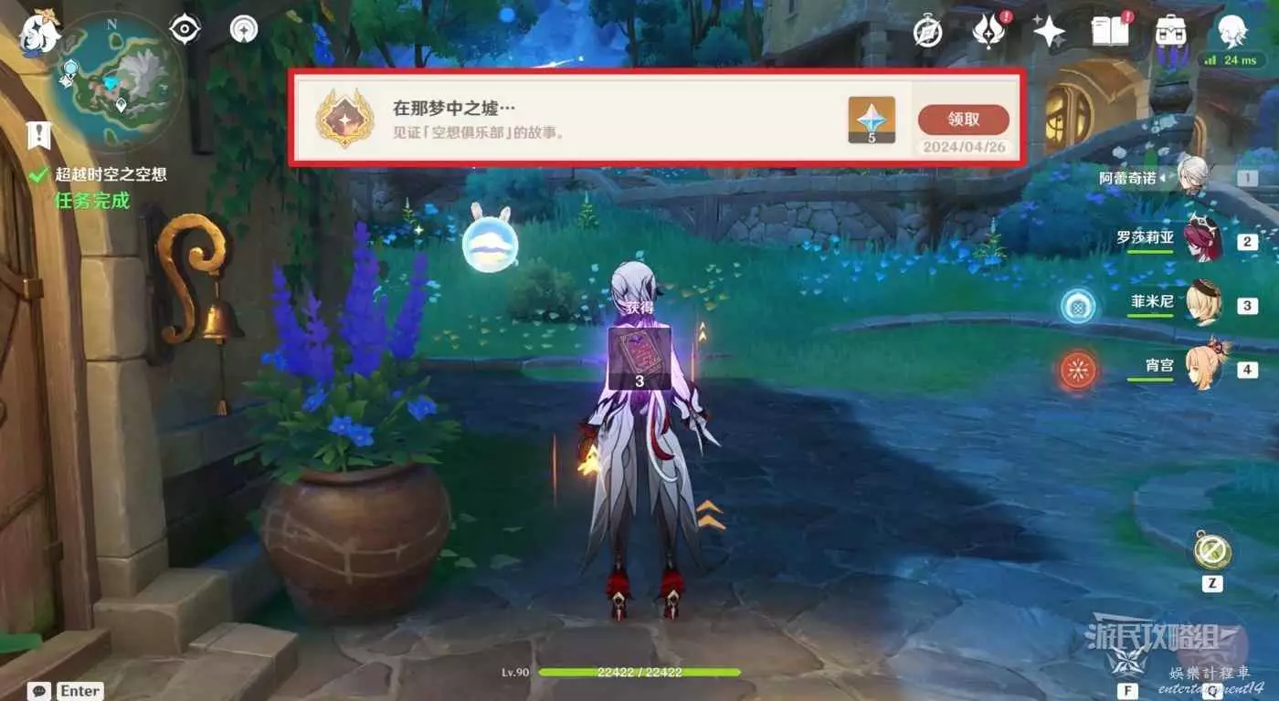 【超越時空之空想】在完成世界任務【他的生命在那邊】後,現實時間第二天自動接取。
