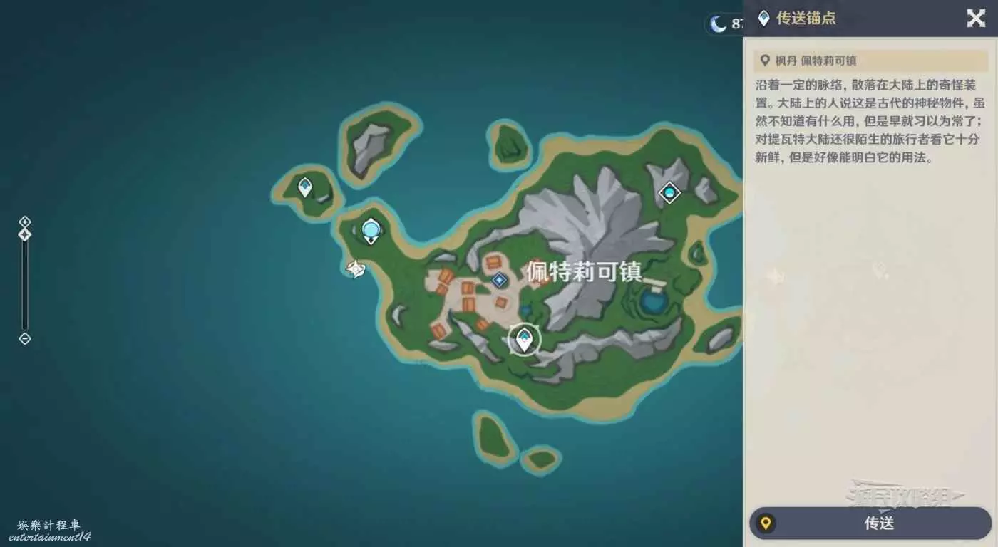對話結束後,傳送回佩特莉可鎮下方傳送錨點,前往目標位置觸發劇情。