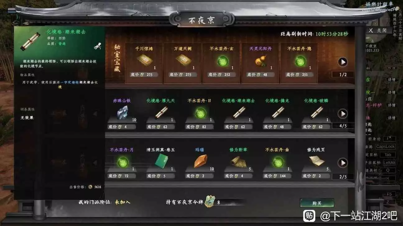 不水芸丹日月,宗門踢館掉、不夜京兌換