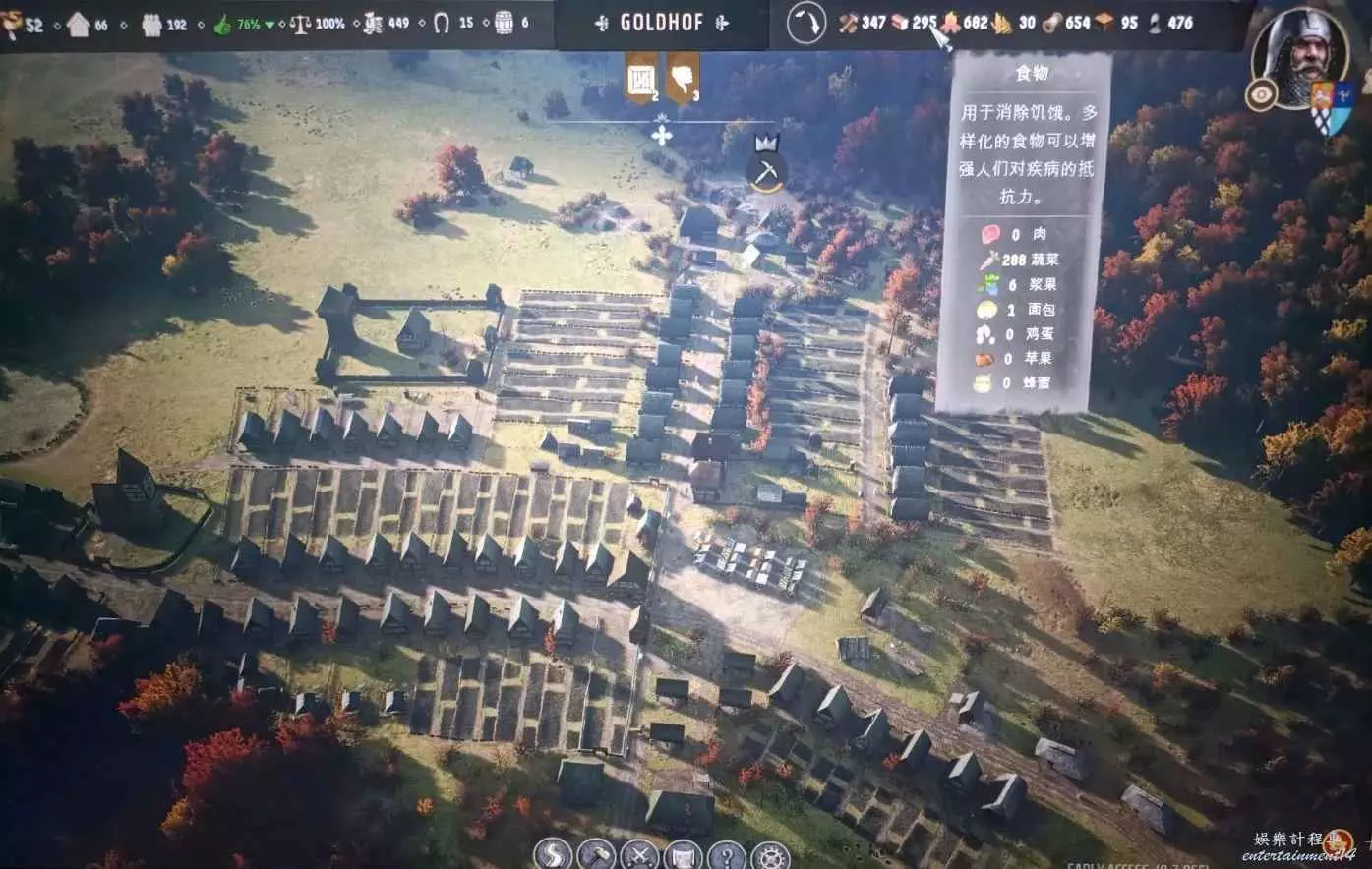 想必有很多玩家和我一樣,玩莊園領主的時候經常中期開始就糧食不足。我開了六七個檔後,找到了可以解決糧食問題的玩法,首先刷一個有豐富漿果(基礎128)的開局,首點漿果翻倍科技,用258的漿果產出玩家可以安穩度過前兩年,但人口上升到100後,漿果也不夠過冬用了,這時候我們要從第二年開始大規模鋪胡蘿蔔(堡地的菜園),因此後院也要拉的足夠大,經實際遊玩,可以做到完全過冬無壓力。