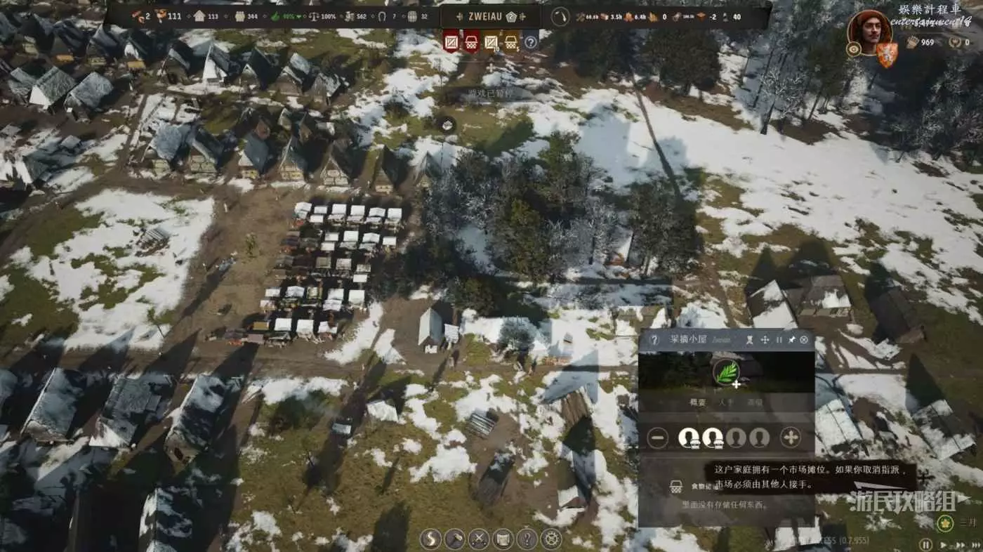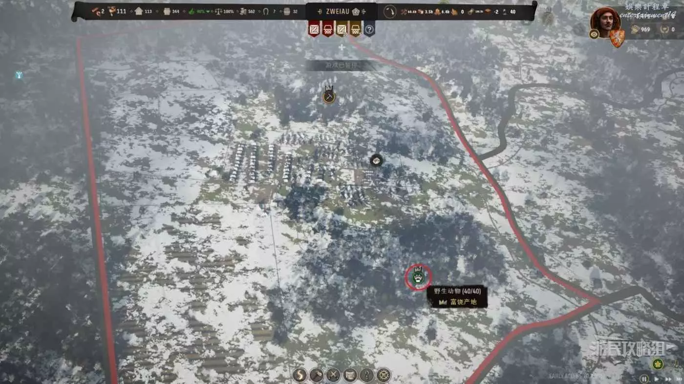 將狩獵營地放置在靠近動物聚集地的位置,不要忘記在建築裡安排居民在此處工作。