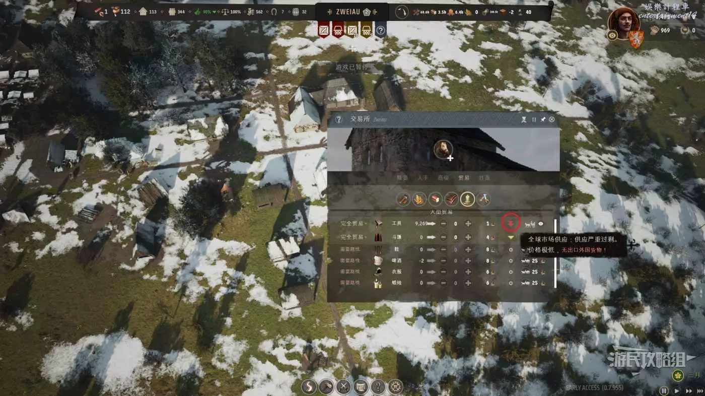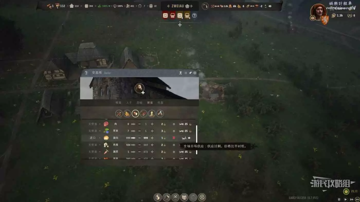 接下來要做的事情就很簡單了,先正常價格不間斷的售賣麵包,等待商品的價格掉到最低的紅色雙箭頭1塊時,將右側期望數量改為999,左側貿易規則改成進口,隨著我們大量的買入,麵包的價格會隨之上漲,此時我們將所有的存貨高價拋售即可。