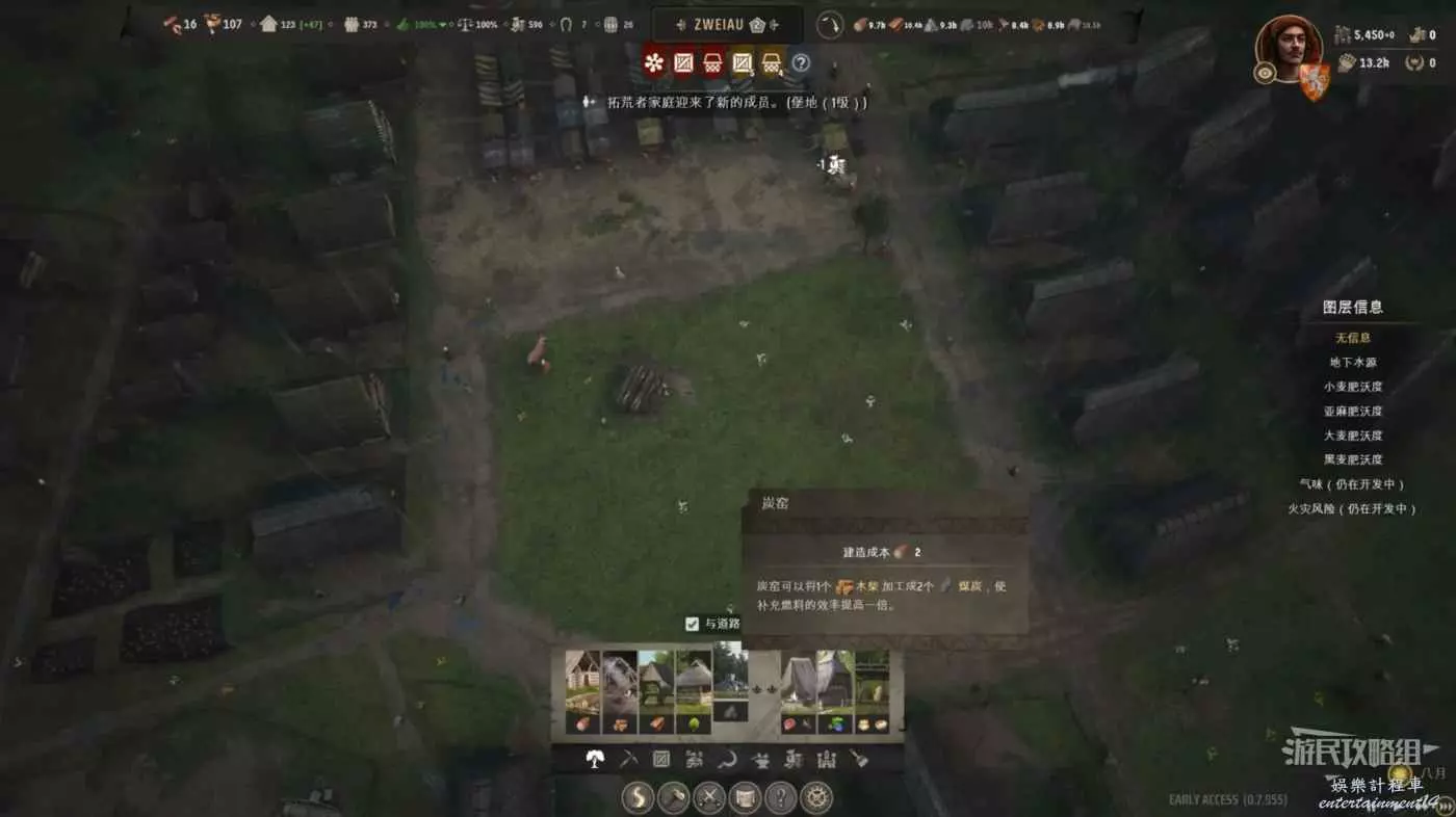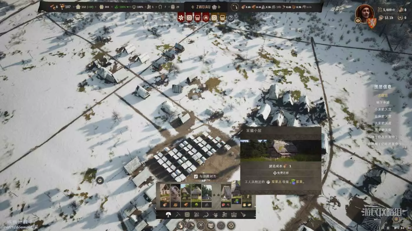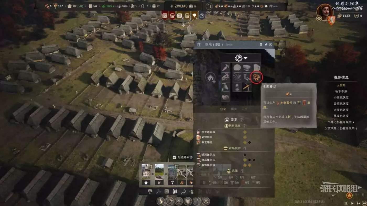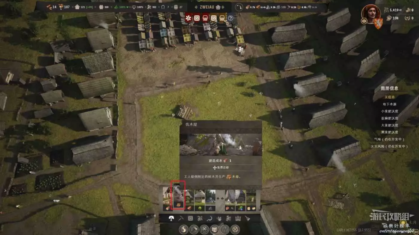 通過建造-採集-伐木屋建築來獲得大量的木柴,注意伐木營地是生產木材,而伐木屋是生產木柴。