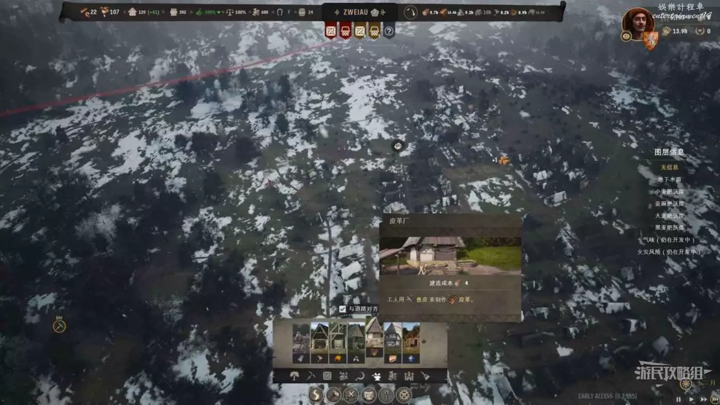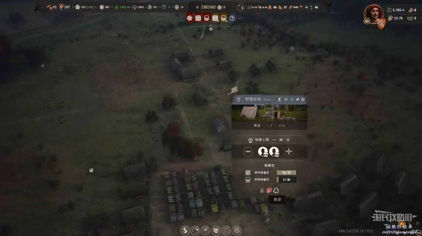 建築“狩獵營地”可以同時獲得獸皮與肉。