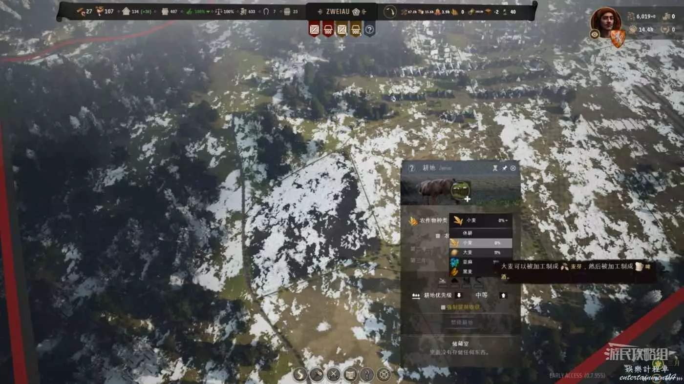 在耕地種植大麥,建造建築“麥芽廠”獲取麥芽。