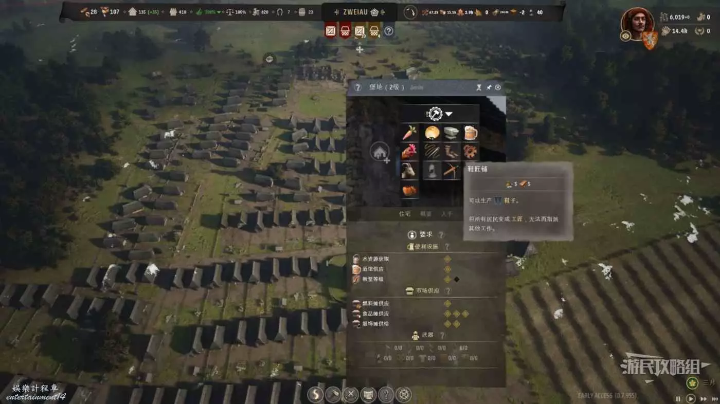將堡地升到2級,選擇附加建築“鞋匠鋪”來製作鞋子。