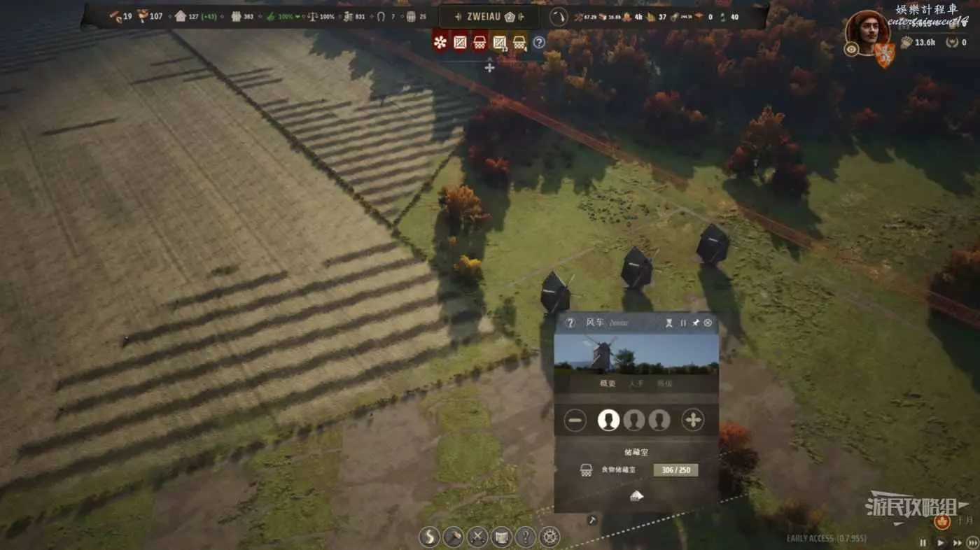 首先需要獲得麵粉,麵粉則是通過風車碾碎小麥獲得,我們首先需要通過“農舍”與“耕地”的組合來種植小麥,附近放置建築風車來製作麵粉。