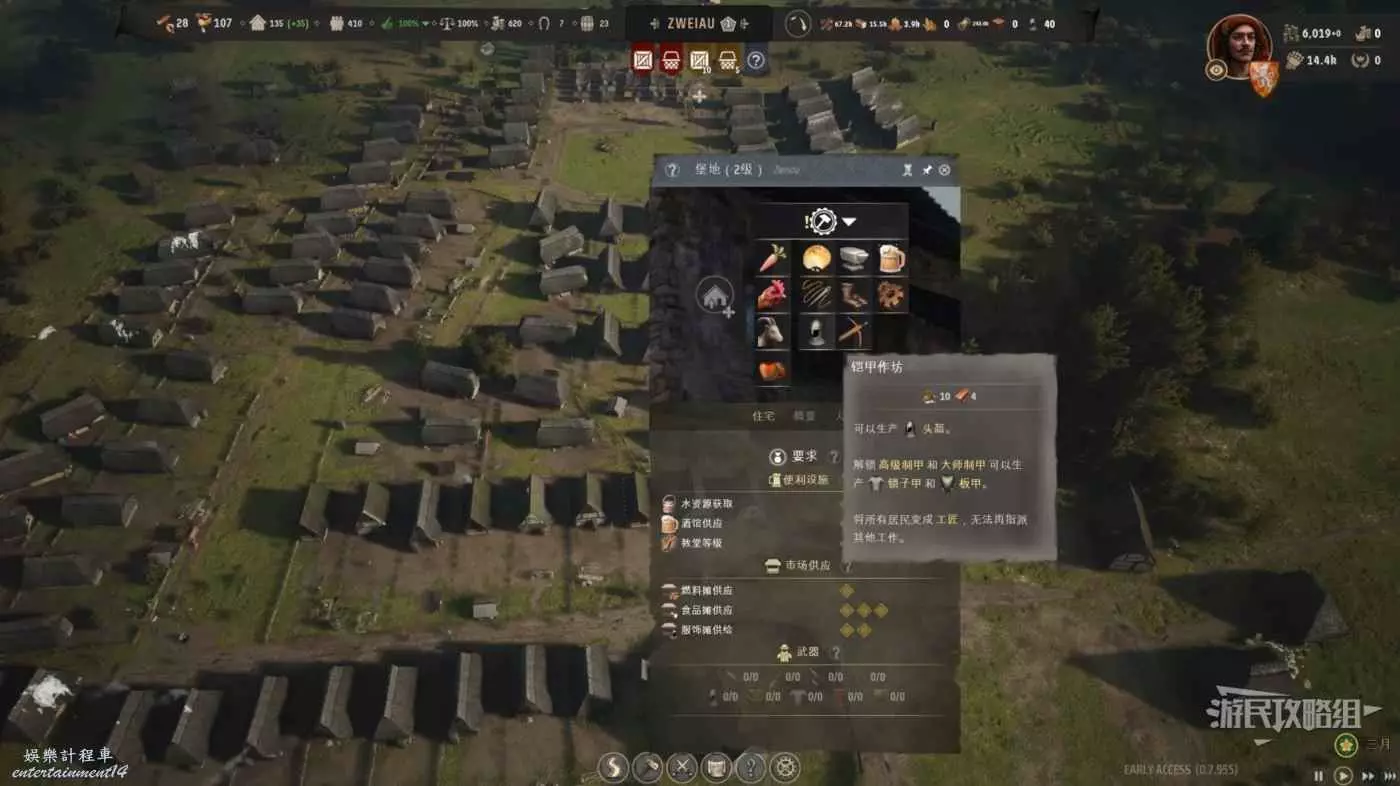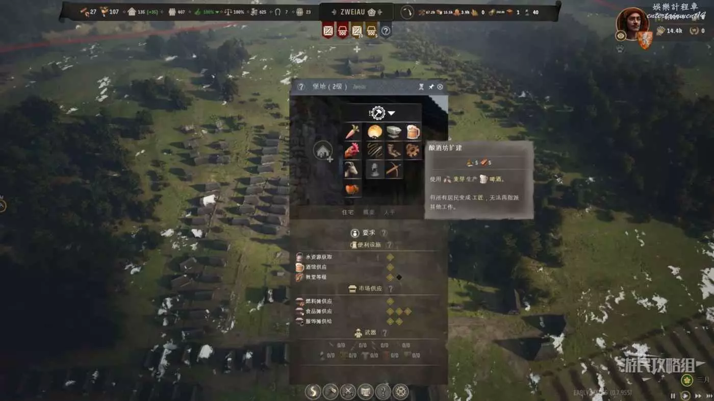 將堡地升到2級,選擇附加建築“釀酒坊”來製作啤酒。