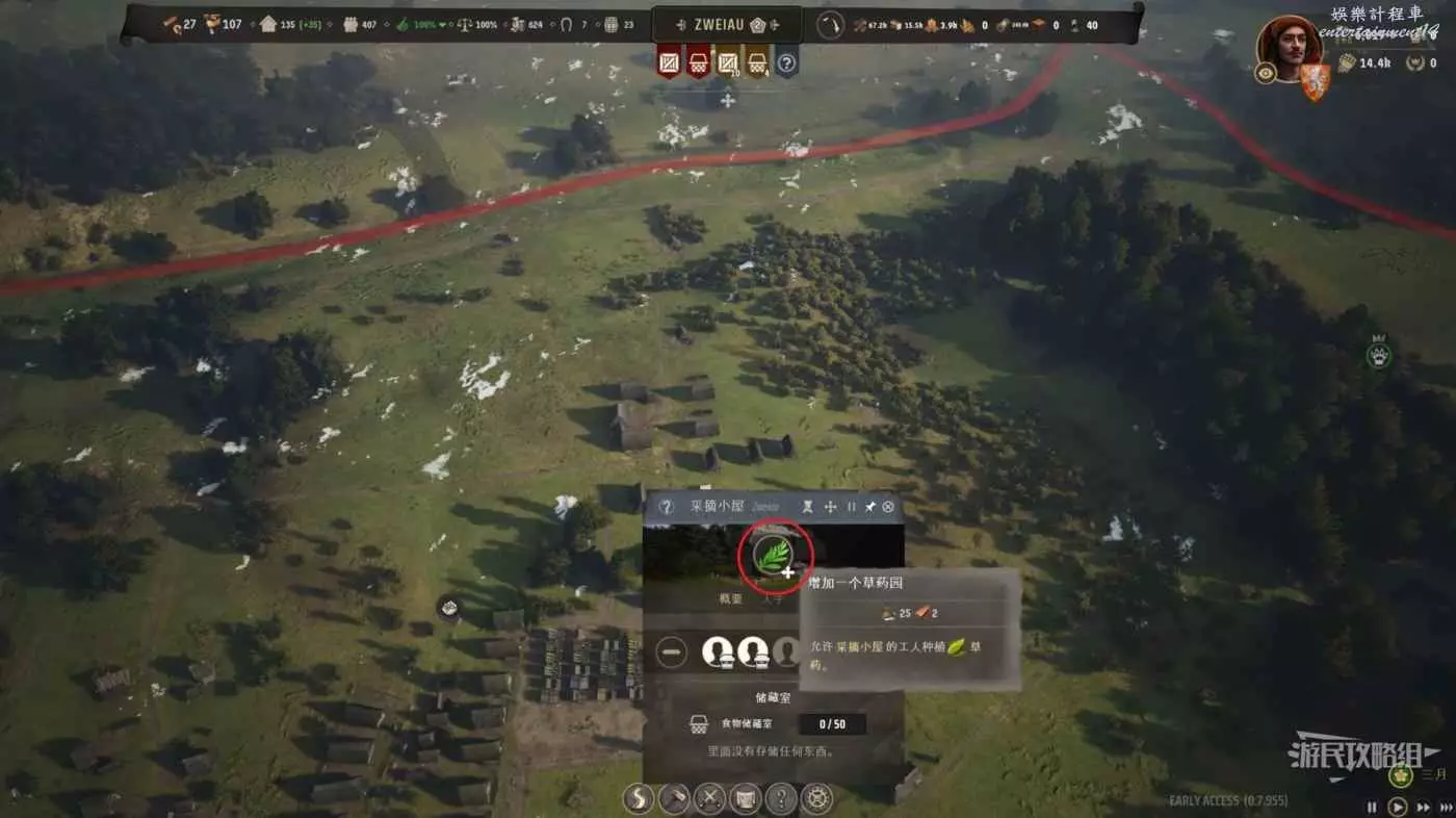 在建築“採摘小屋”處可以選擇增加一個草藥園從而批量獲得草藥。