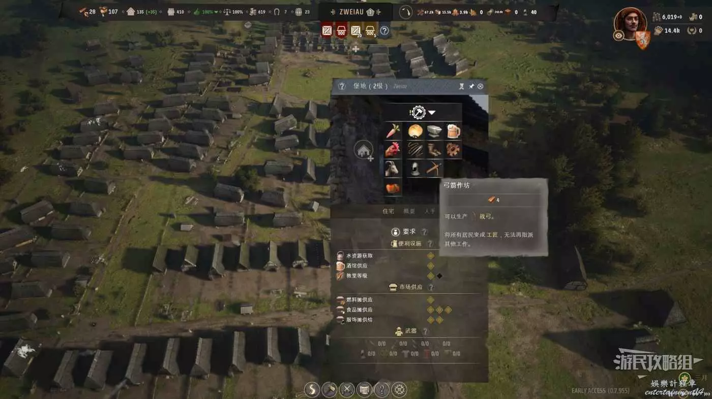 將堡地升到2級,選擇附加建築“弓箭作坊”可以制作戰弓。