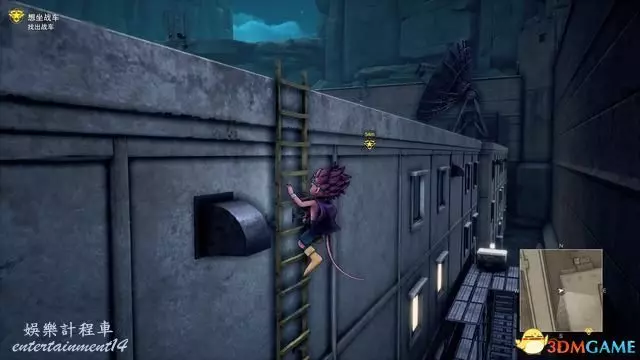 打倒敵人後鑽過破洞,利用梯子爬上屋頂。