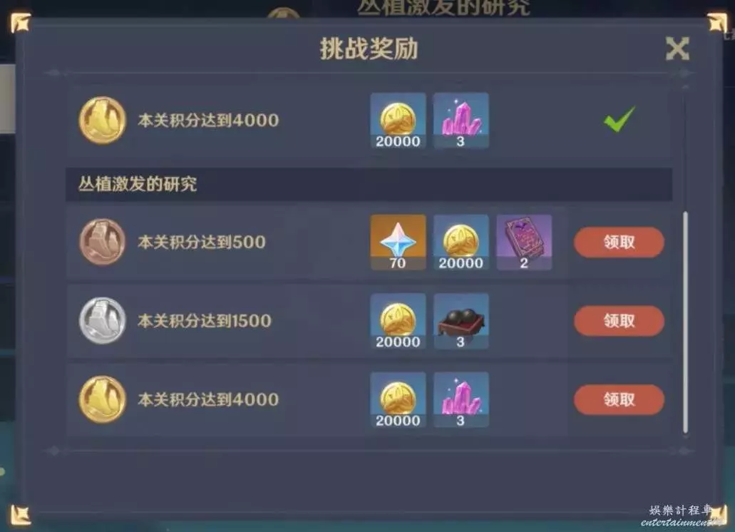 活動獎勵要求達到4000分即可,在活動中如果提前達到4000分,可以直接退出挑戰,也可以獲得全部獎勵