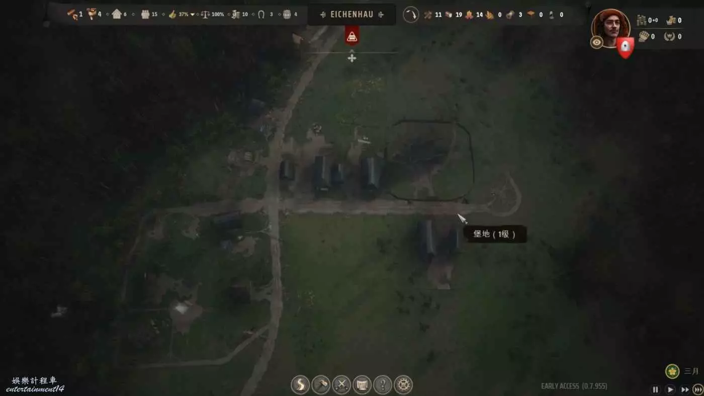 3,開局拍伐木營地、狩獵營地,兩者設置最高優先順序。另拍下2堡地、1伐木坑。因為狩獵營地不需要木頭,小人會同時建造伐木和狩獵營地,其他建築需要等牛運完伐木營地的木頭後才能動工。