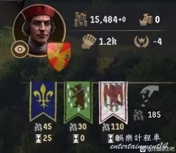 雇傭兵是職業軍隊,後期錢多了可以長期雇傭,後期一共能用3隊總計216人的雇傭兵,共花費185金幣每月。
