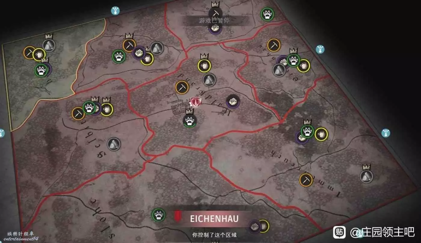 莊園領主重建和平勝利需要佔領整個地圖一共8個地塊,和敵對領主打仗包括突然來襲的強盜都需要軍隊,所以需要貿易城鎮賺取財富,然後收稅。