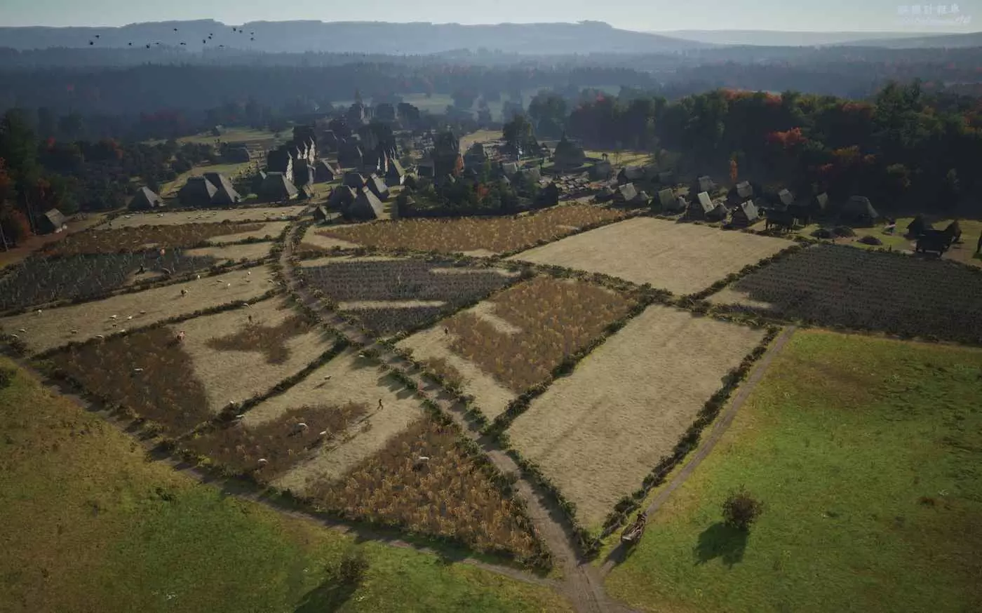 但牛耕強度還可以。工作距離不遠的話,一個農莊只指派一戶人帶一頭牛,負責2.5摩根的土地,基本每年秋季能完成本年的收割、再次耕地、來年作物的耕種,作物就直接在地裡越冬。實際上土地還可以拆細一些,當年冬季先種兩塊小的,來年春季再耕另外的,能搞的土地就更多了。