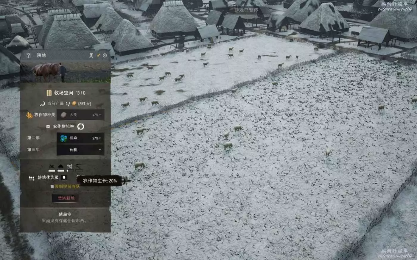 順帶一提,果園堡地的食物儲藏室能超上限儲存。但是,如果倉庫內蘋果太少,糧倉的人取貨的優先順序很低。