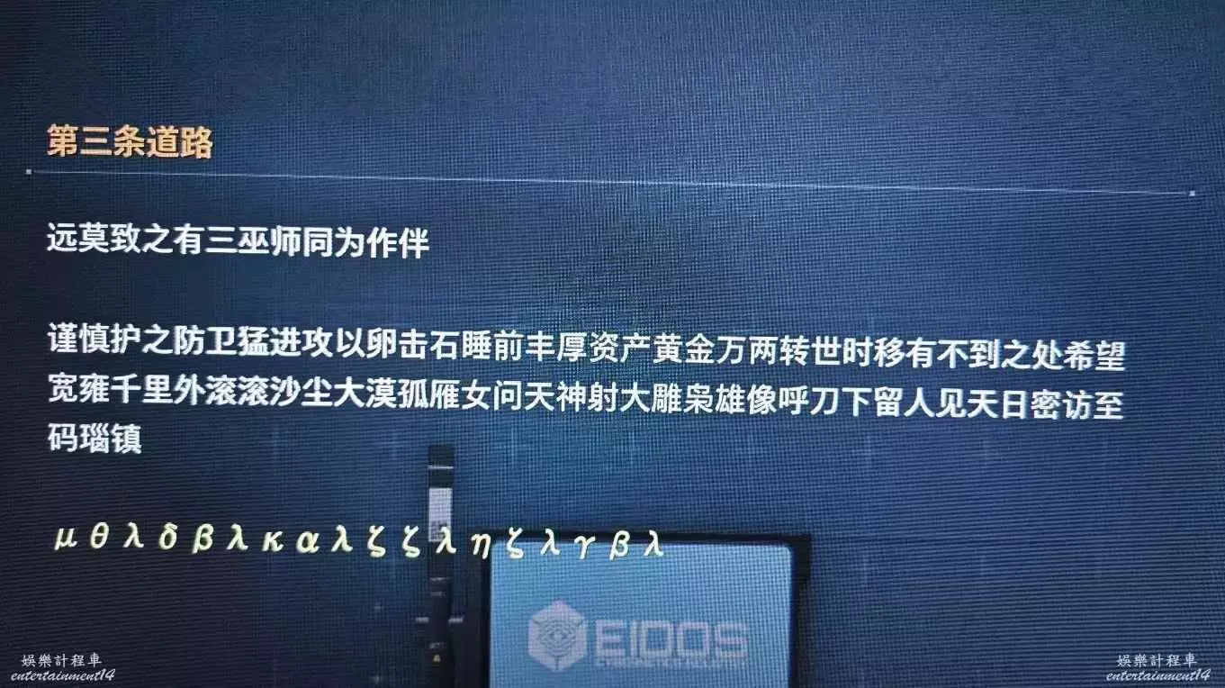劍星 (Stellar Blade) 第三條道路任務解謎方法 1 5 月 2024-05-01 廣告 作者:阿魚AYU- 來源:bilibili 遠莫致之有三巫師同為作伴 星刃大沙漠(Great Desert)中 先找到圖中的日誌,再找到一個雕像下金色的箱子 解密思路:18個字母,分為6組,每組最後一個字母,也就是λλλλλλ