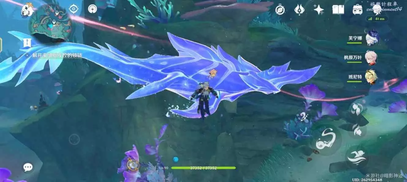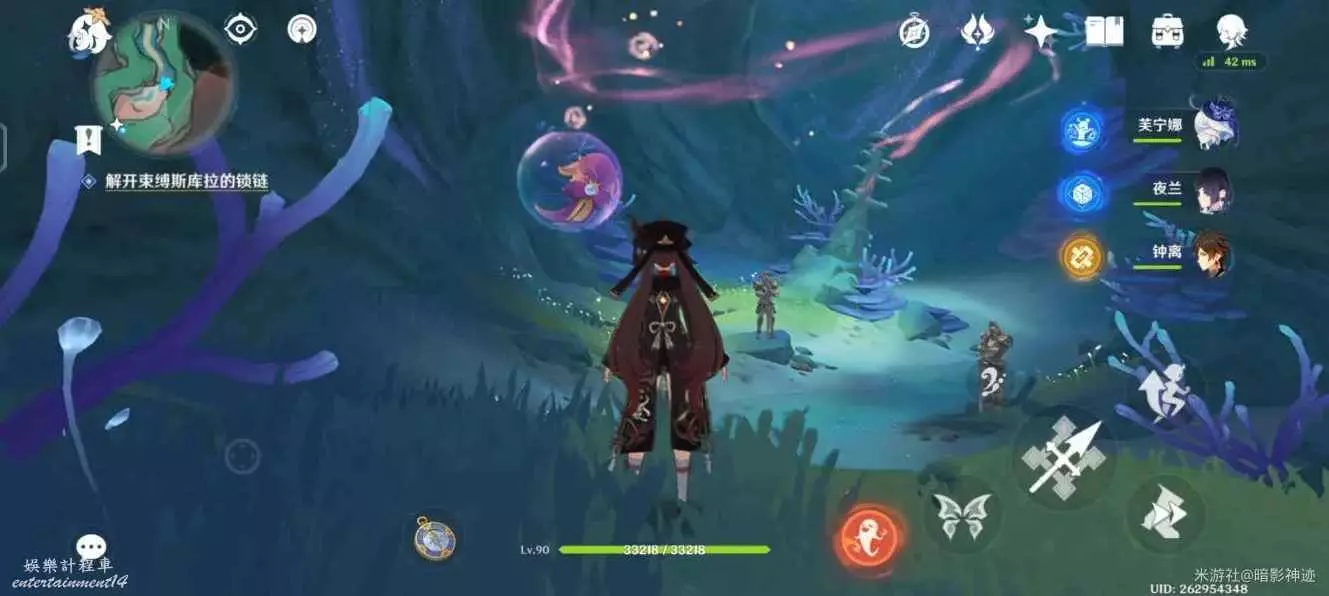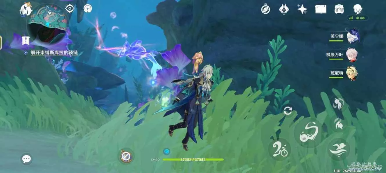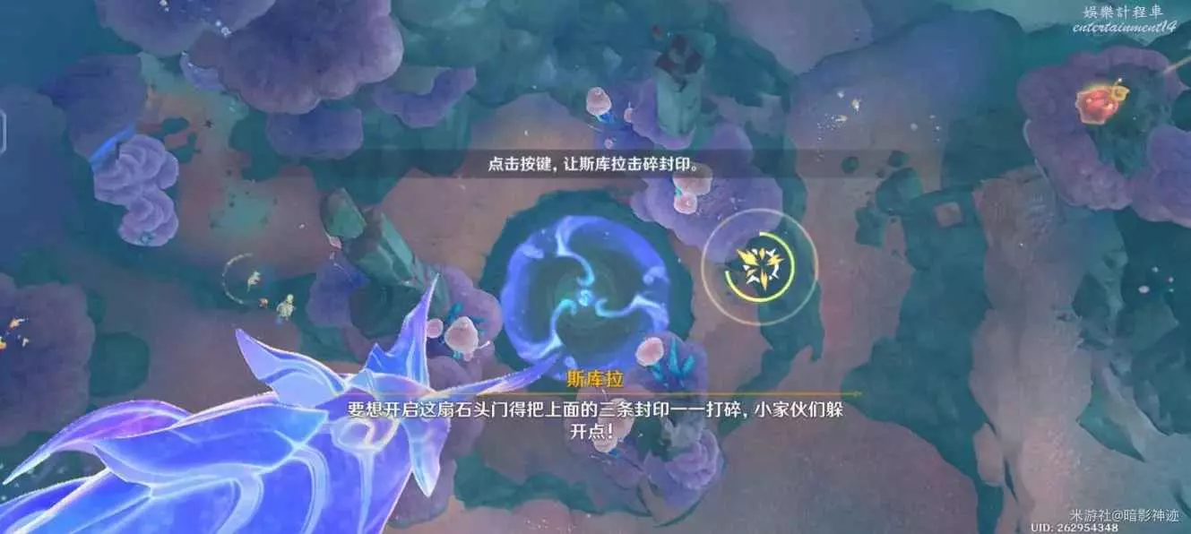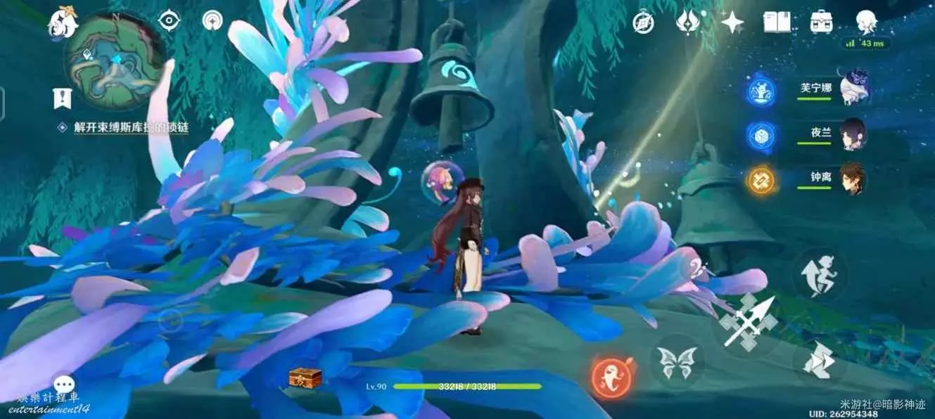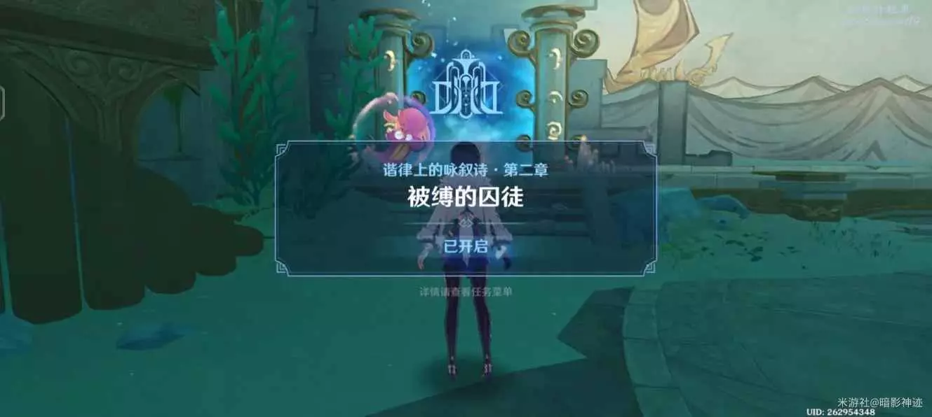 之後,我們來到最後一處鎖鏈的位置。在這裡,我們需要讓海葵處於共鳴狀態,很簡單,我就不說明了。之後,和之前一樣的方法解除鎖鏈即可獲得一個珍貴寶箱並且解鎖成就『曾與世界為敵』