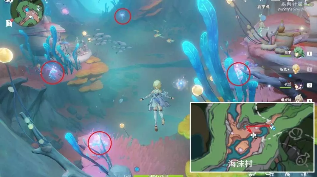 (3)陸地上的海露花需要水元素攻擊後才能採集,水中的則可以直接採集