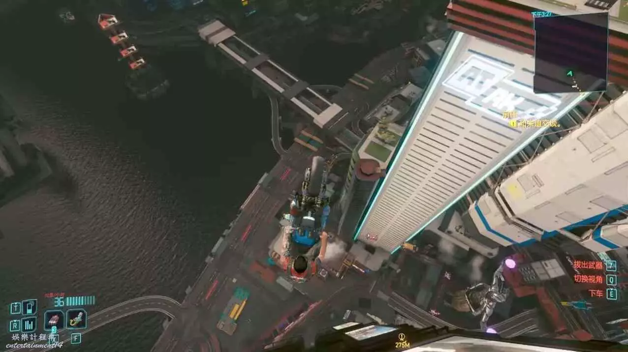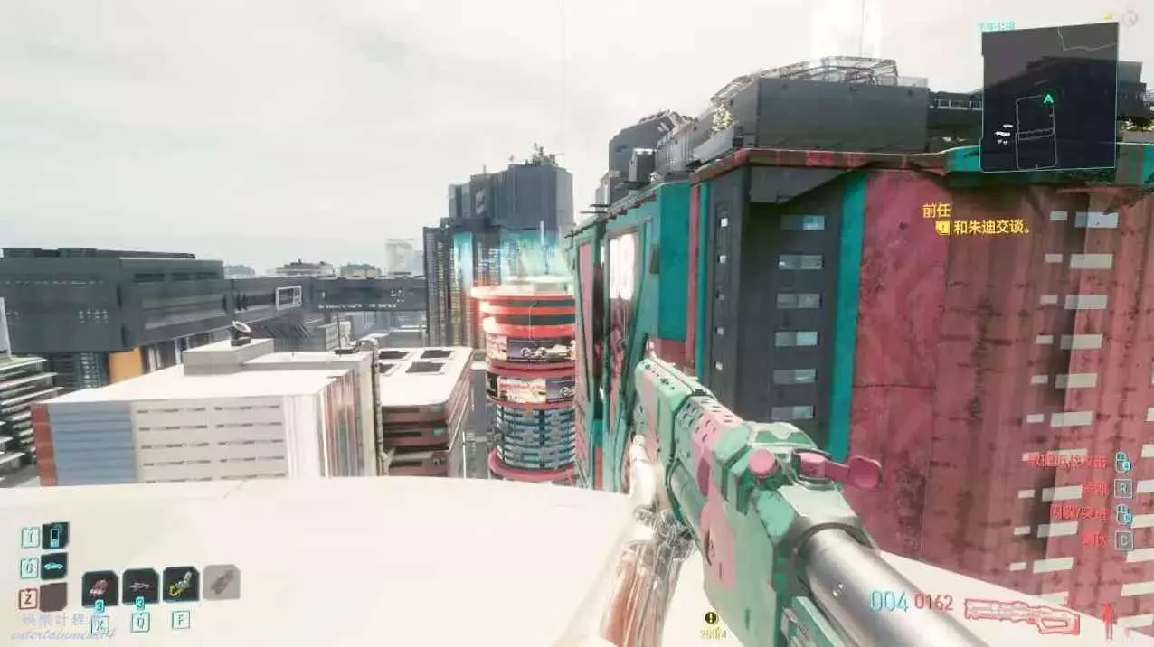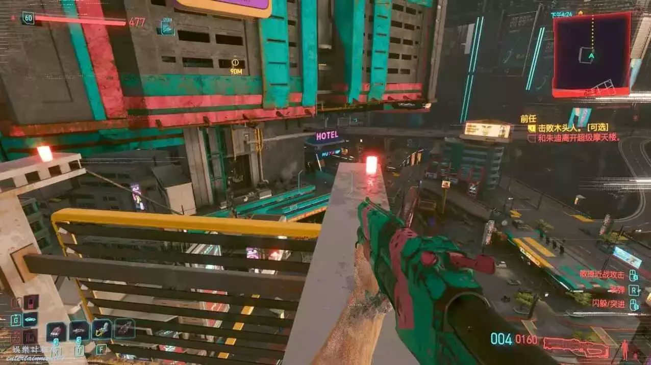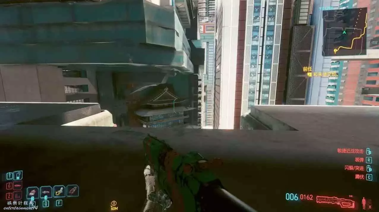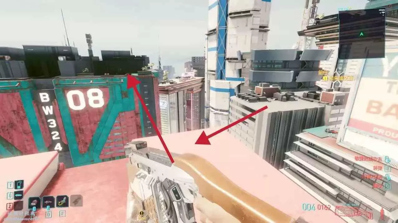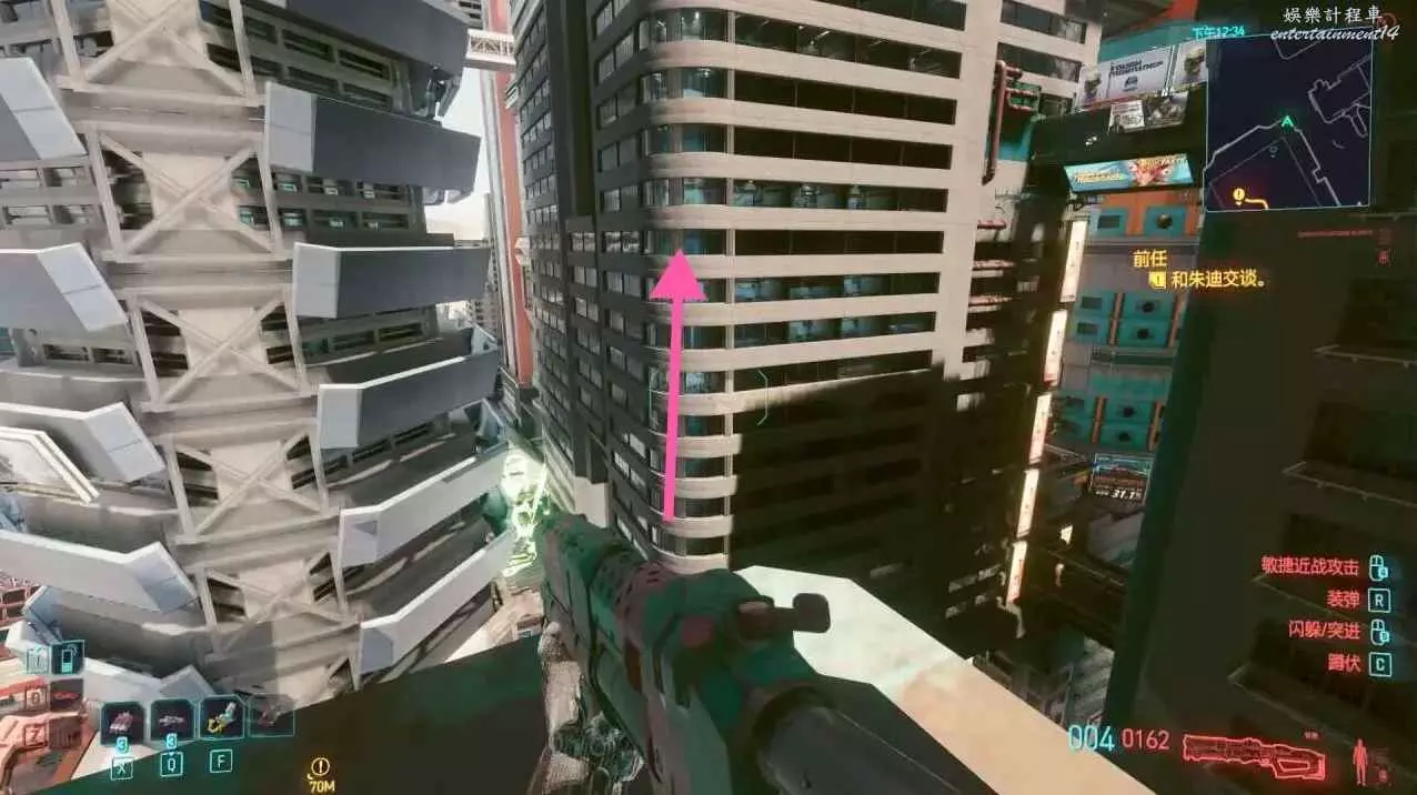 最累的部分來了,接下來要從這棟樓一層層往上跳,用普通二段跳就能扒到上一層的邊緣,如此反覆,一直到樓頂為止。