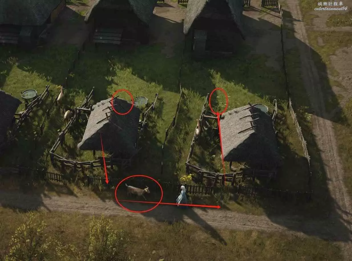 如圖所示,養雞養羊確實有動作展示,但都是在後院站一下(養雞的會撒兩把飼料),時間大約是最快速度下2-3秒,比刁民在外面逛街浪費的時間還少。據此我認為後院養雞養羊對勞動力影響可忽略不計。