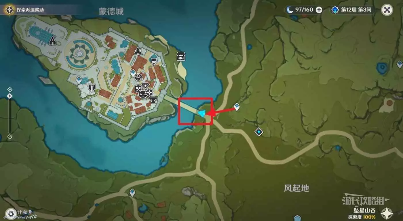 蒙德城門口的橋上,一撮鴿子可以隨便拍。注意不要靠太近,在下圖藍色箭頭位置慢慢走過去拍即可。建議從下圖紅色箭頭所示的傳送錨點往橋方向走,如果橋上的之前不小心嚇跑了,從錨點到橋的這一路上也有許多鳥可以拍。
