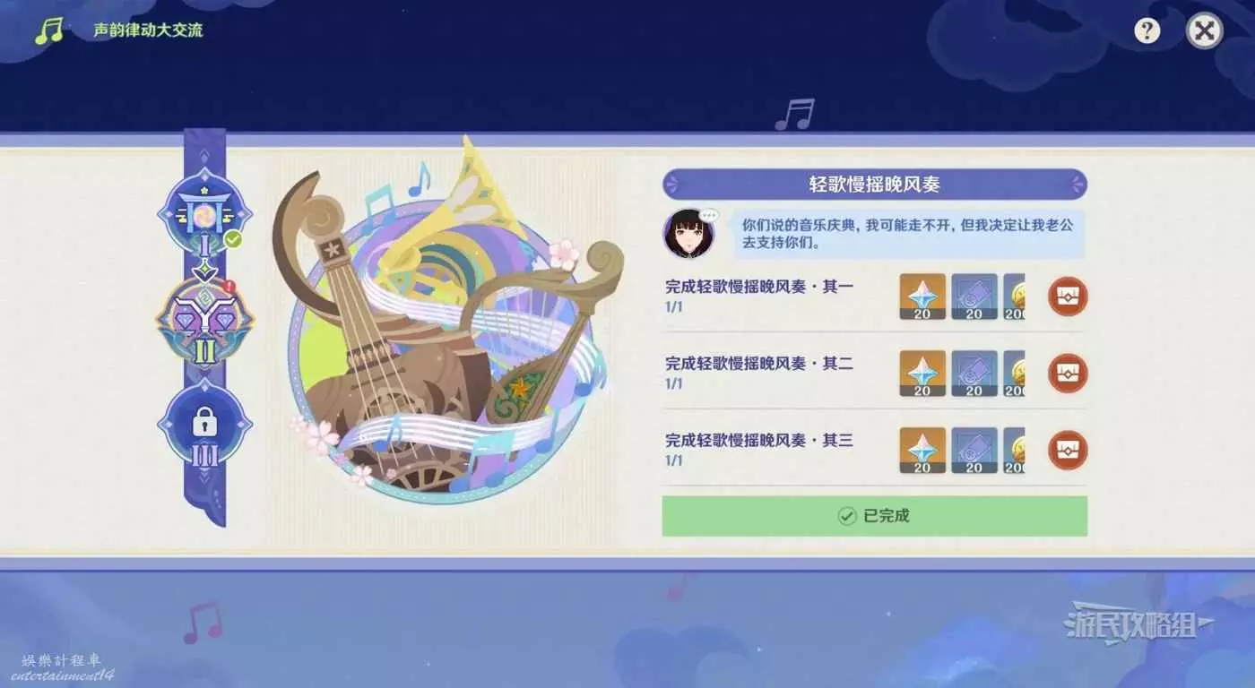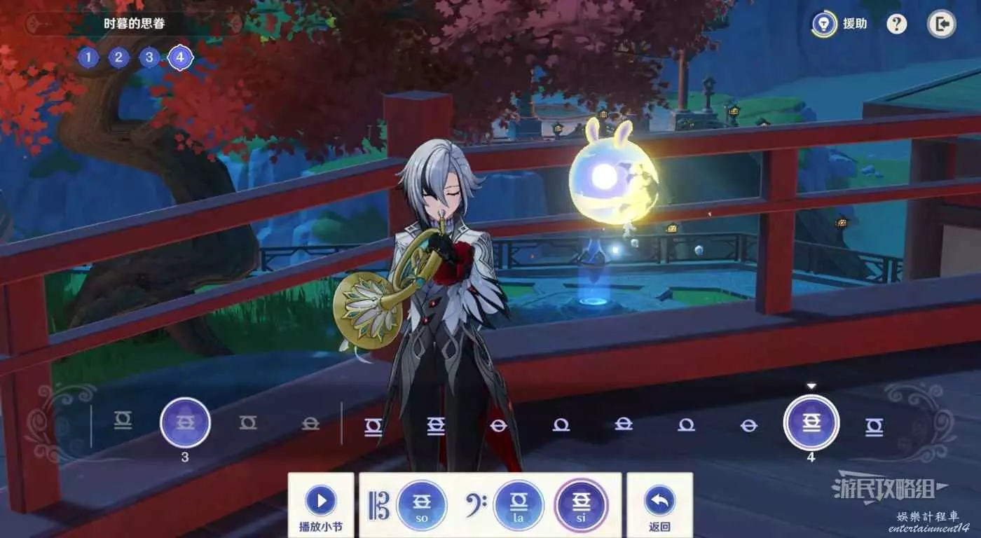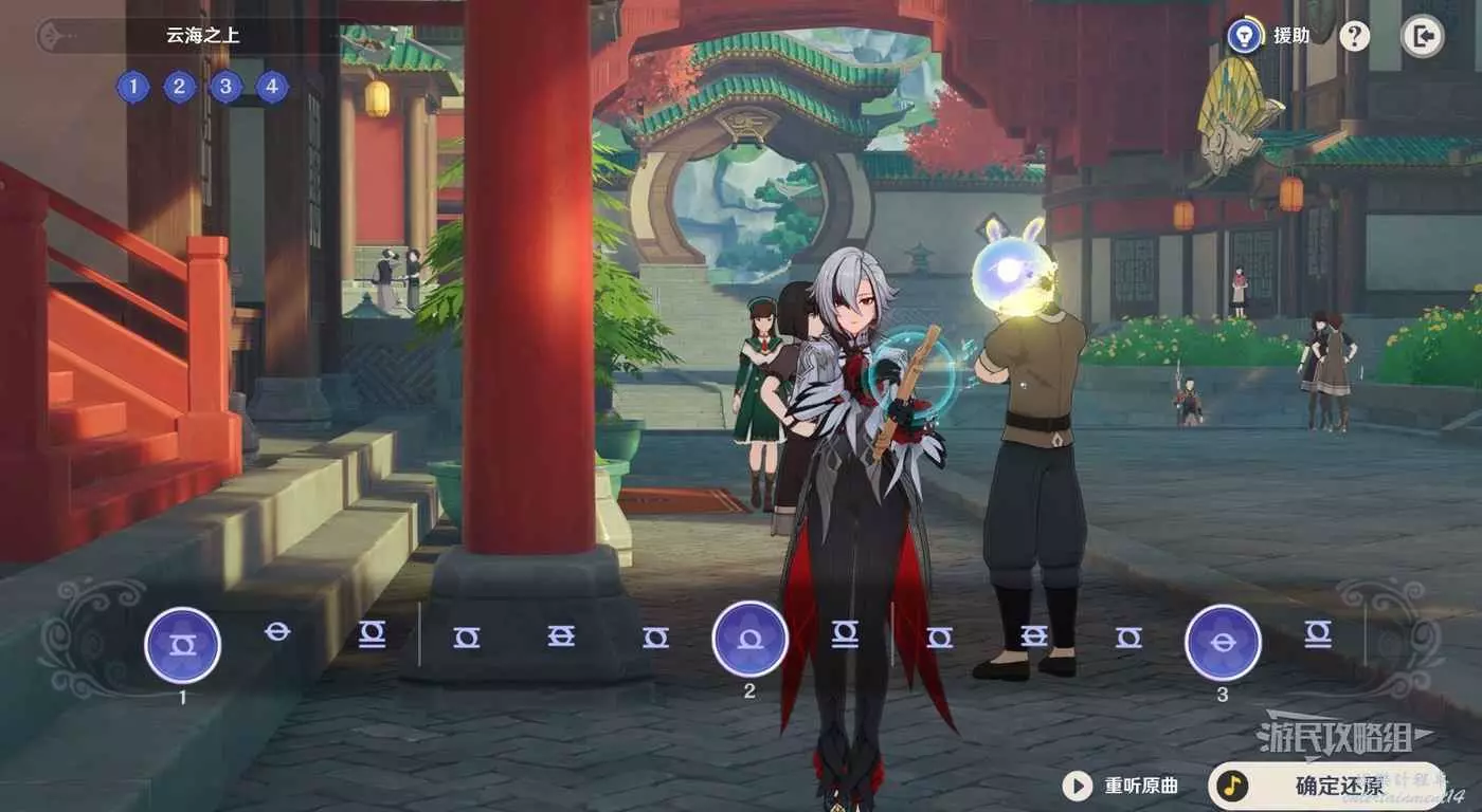 原神 (Genshin Impact) 4.6聲韻律動大交流第二關正確答案 8 5 月 2024-05-08 廣告 作者:瑞破受氣包 來源:遊民星空 聲韻律動大交流-第二關-輕歌慢搖晚風奏 正確答案速覽 紀芳-時暮的思眷:1、2、3、3 星稀-璃月的晴空:2、1、2、2 琳琅-雲海之上:1、1、1、2 活動位置 第二關所有NPC都位於璃月港,從璃月港上方傳送錨點出發沿著一條街走即可。 紀芳-時暮的思眷 正確音符:1、2、3、3 星稀-璃月的晴空 正確音符:2、1、2、2 琳琅-雲海之上 正確音符:1、1、1、2