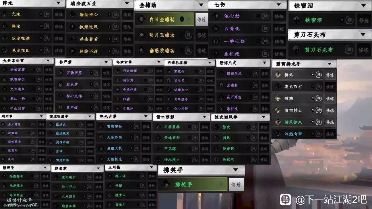 2.綠.渡蜀掌,1101,1454,(乞丐身上三本功法買了)/打聽獲得