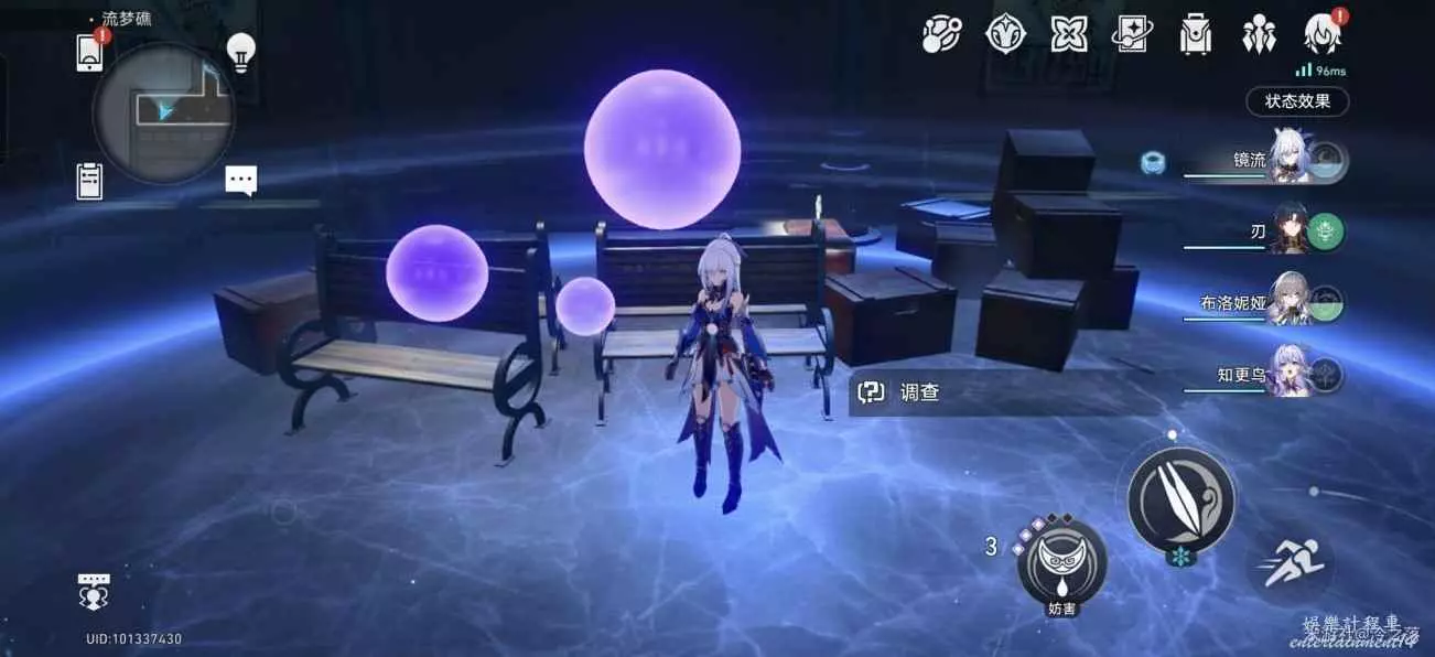 第一個從錨點傳過了然後向後走,在標點位置會有紫色的泡泡點擊調查即可(會必定進入戰鬥)