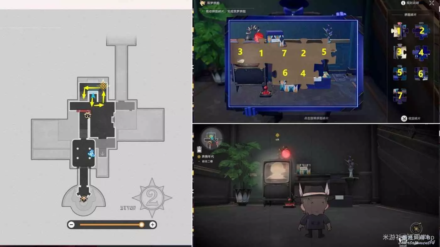 (3)從上圖3任務點進入後,去4位置房間,完成裡面的拼圖後,從左上角的鏡子進去過劇情