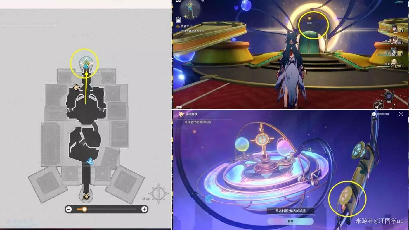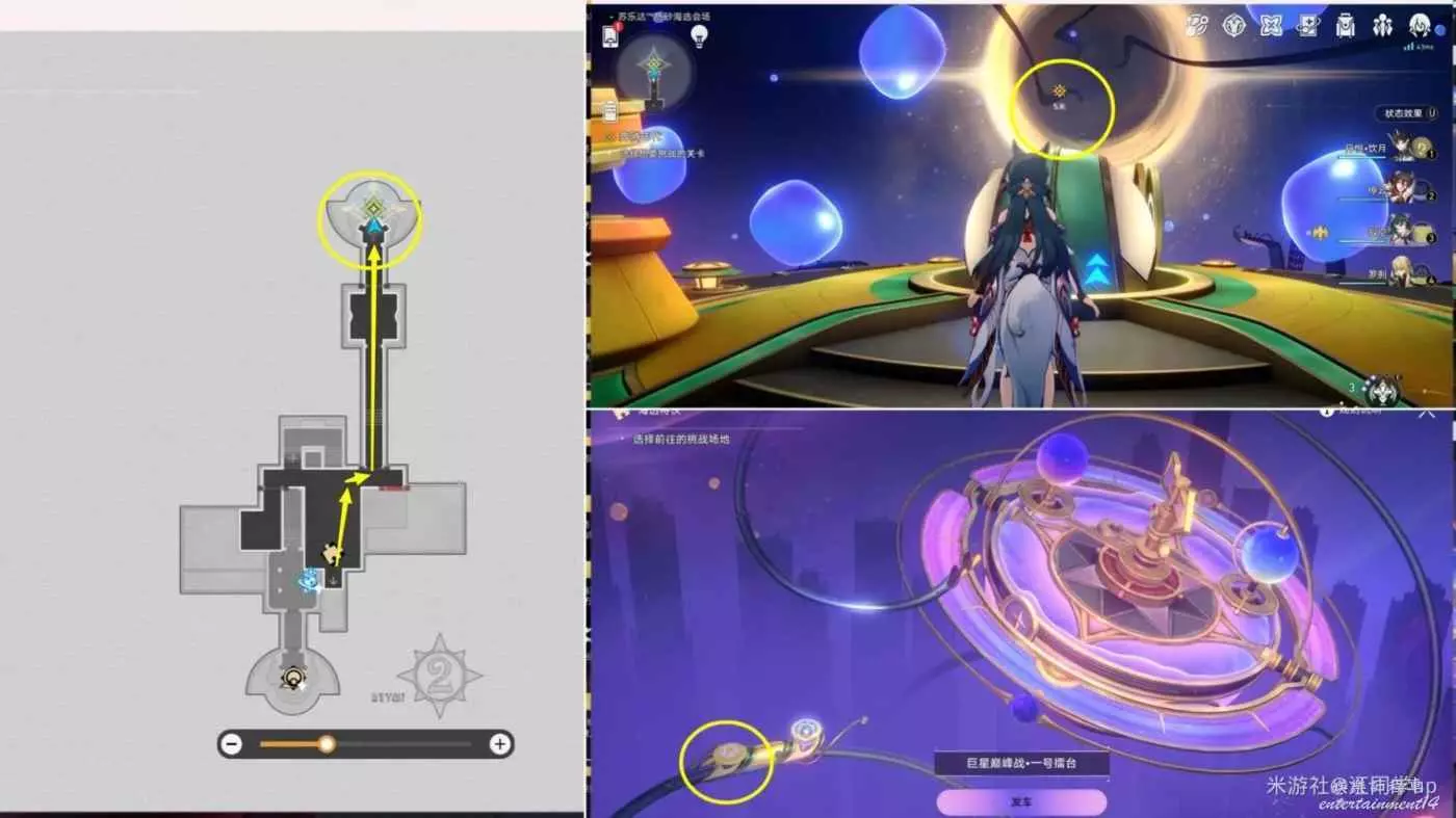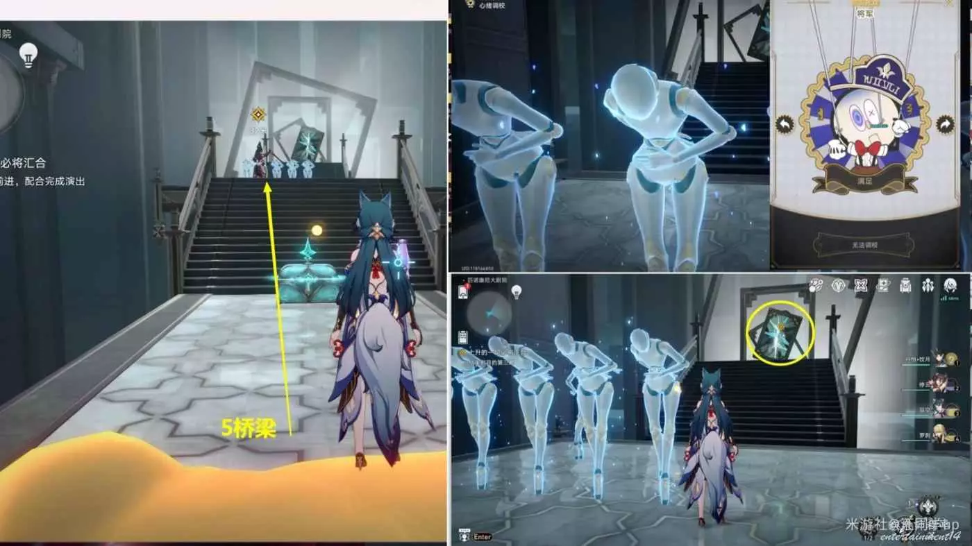 (4)進入上圖第1個鏡子副本後,去【1酒塔】獲得次數,接著啟動【1機關】將【1地板】移動到右邊,然後從【1橋樑】上去