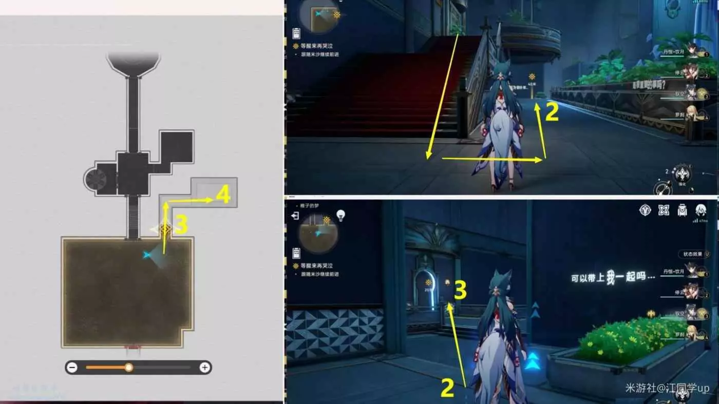 (2)進入1房間後,從右邊下去,去2任務點,接著從3任務點門進去