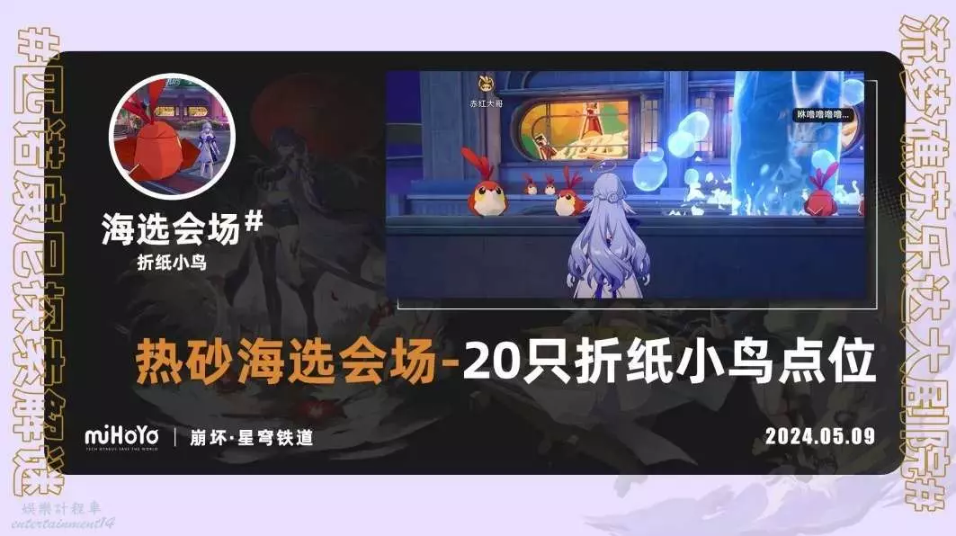 任務概述:幫助赤紅大哥,尋找到藏在蘇樂達熱砂海選會場的折紙小鳥