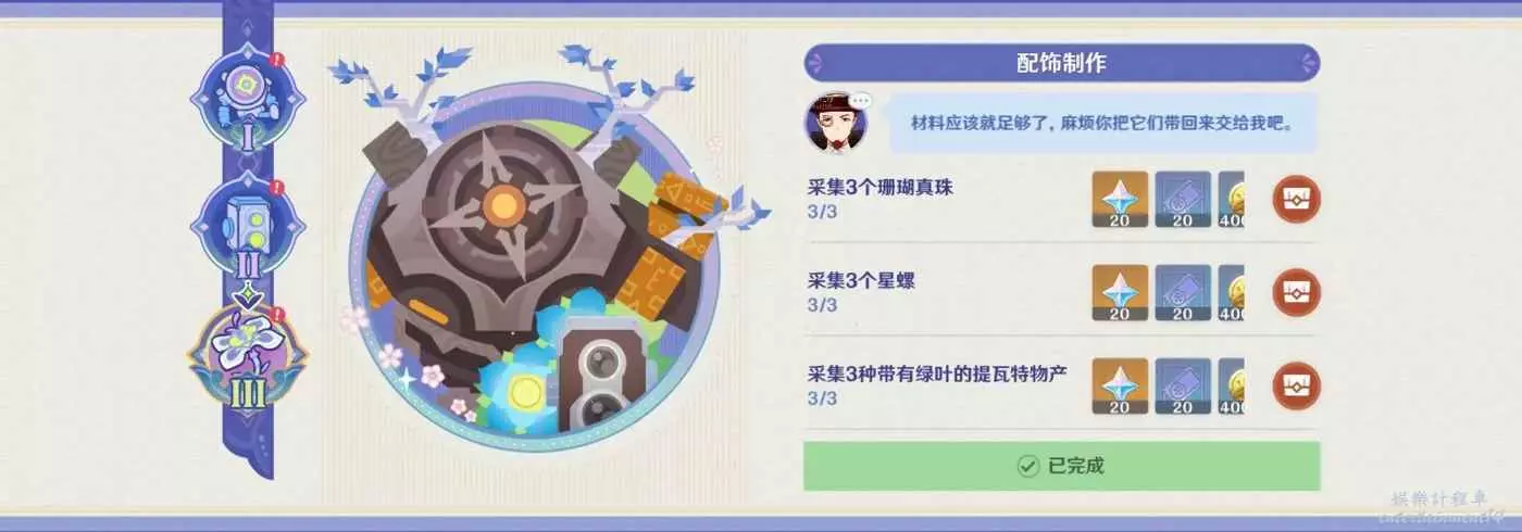 「百萬奇飾大搜羅」:旅行者需要根據德沃沙克給出的清單,收集所需物品,協助他製作裝飾。