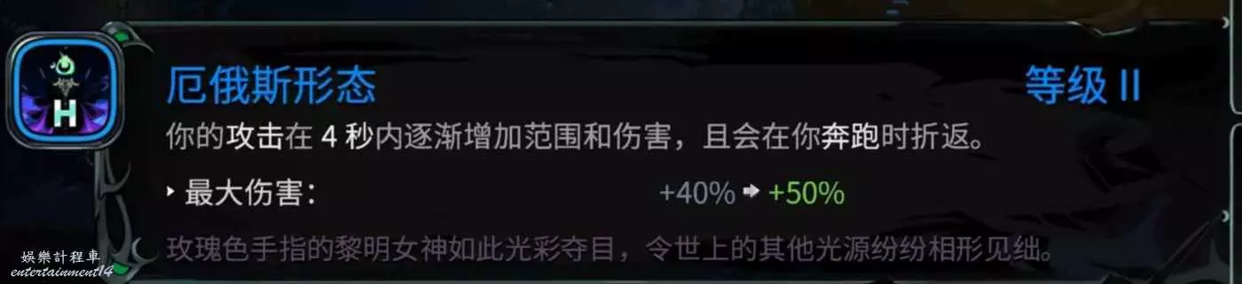 每升一級會增加10%火炬的最大傷害,初始為40%,最高80%。
