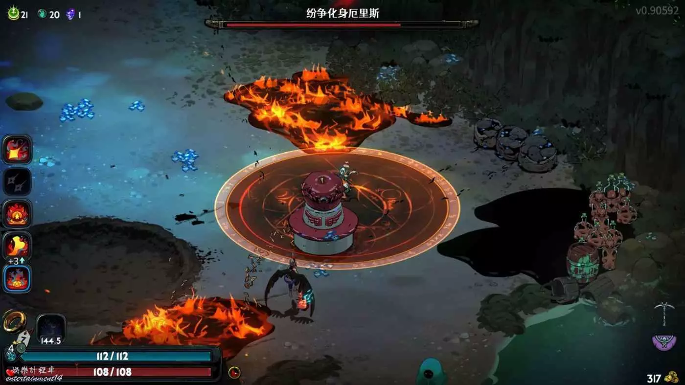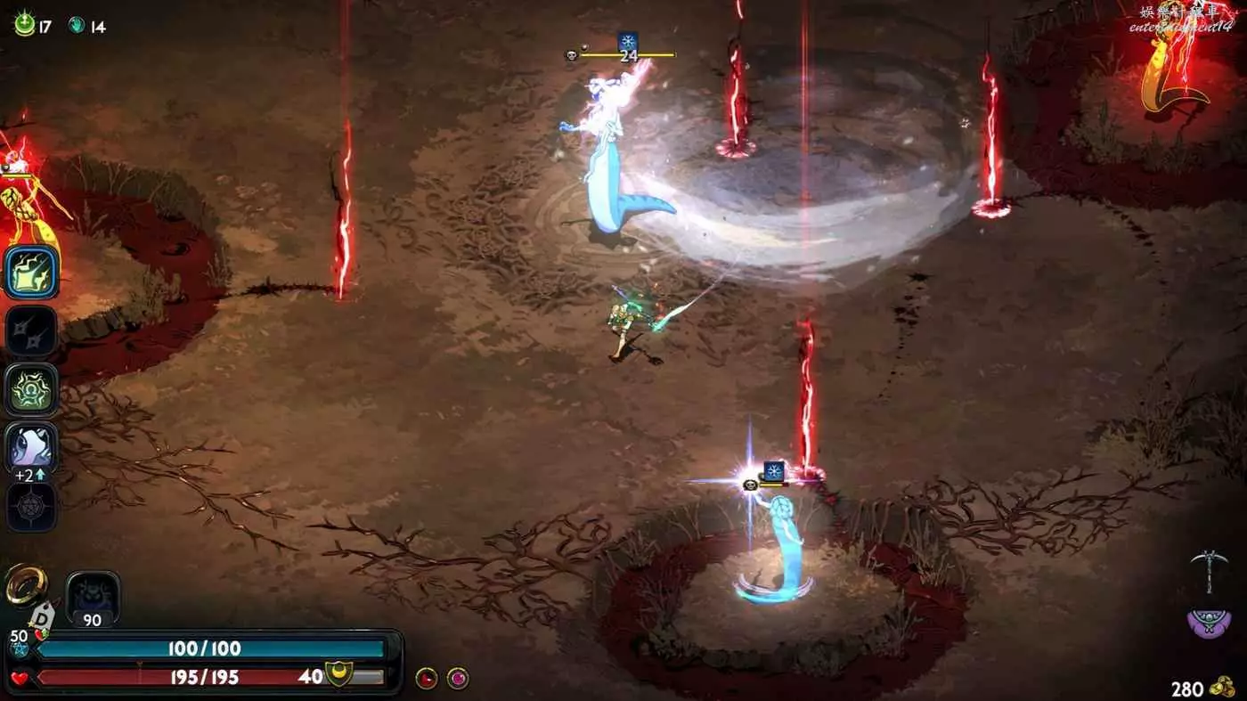 法陣表面上替代的是1代的炸彈,但它有著更好的功能多樣性和配合可能性——法陣可以原地放出一個圓環,阻擋敵人的靠近:《哈迪斯2》存在很多沖臉類型的怪物,比如ACT1的嚎叫女、ACT3的拳擊手,這些怪物如果是帶甲的那種(攻擊無法打斷動作),沖臉就會讓人一頭包,但用法陣配合地形就可以有效的阻隔,也方便聚怪AOE。