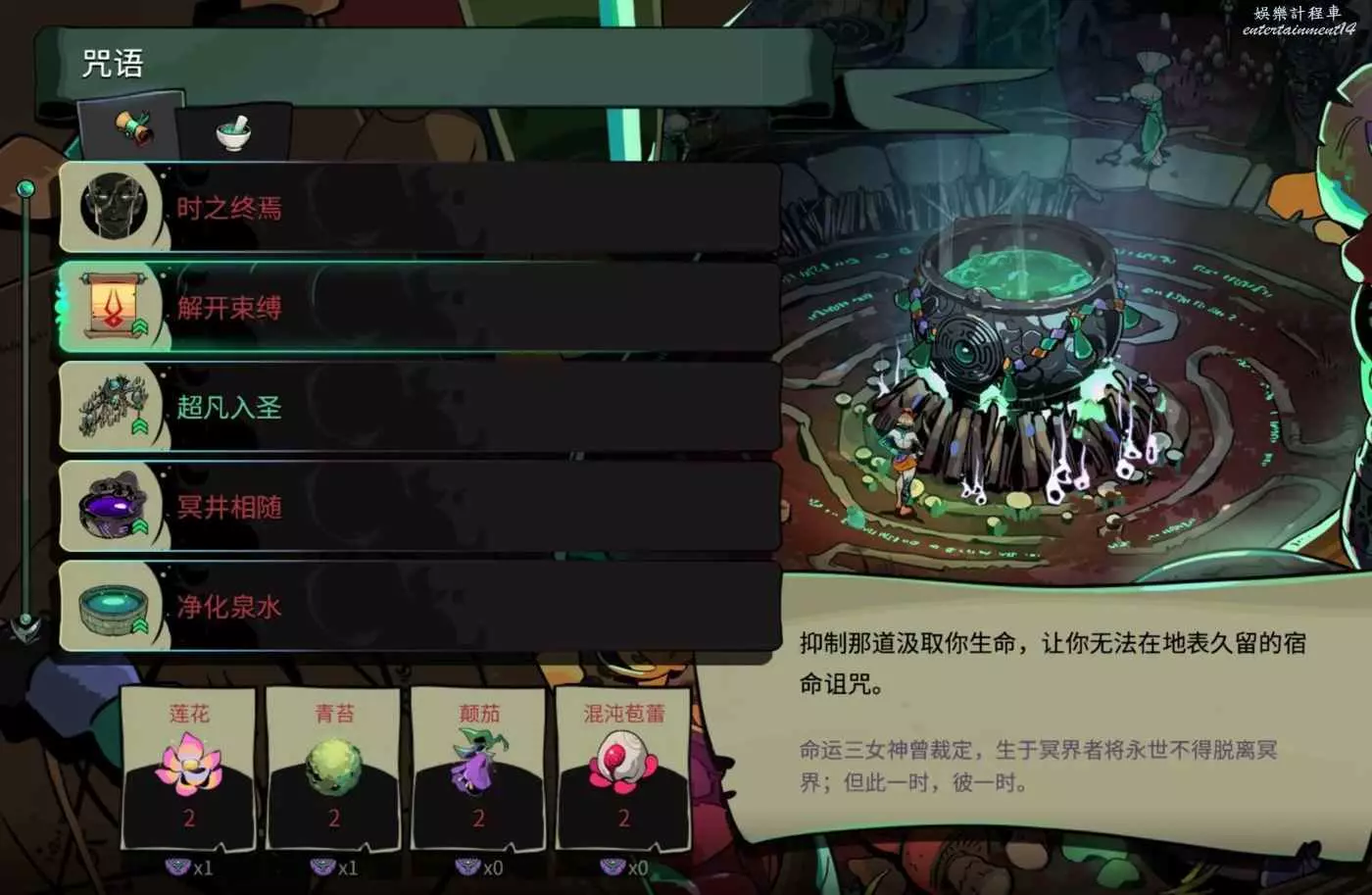 大招在我看來是2代一項非常有意義也有意思的創新——遊戲中包含了10多種大招,它們不再像1代那樣分散在眾神,而是統一集中在月女,每個大招都有自己的技能樹,可以通過反覆獲得月女的祝福來增強。
