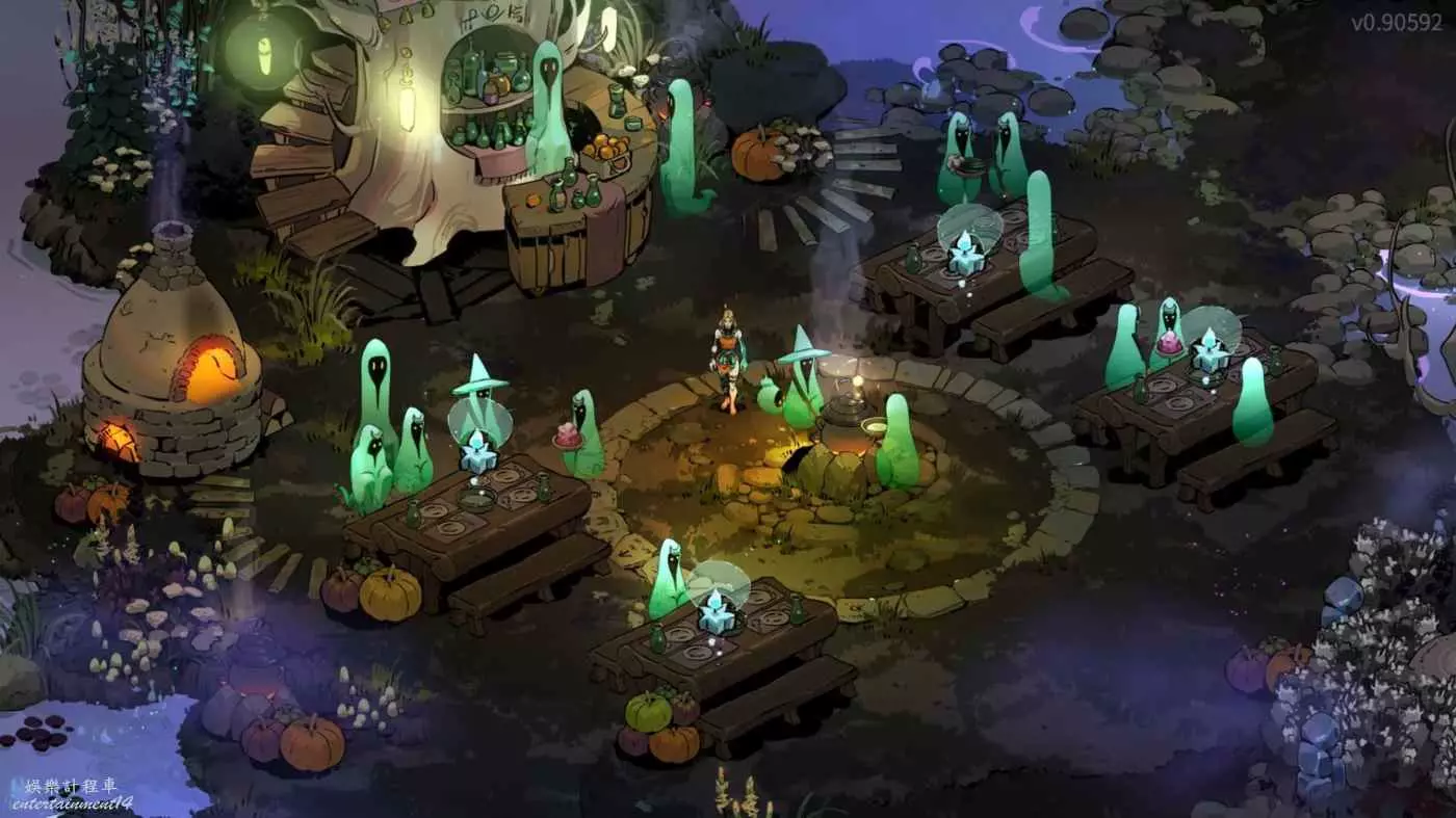 這看上去可能有點怪,但2代除了傳統的解鎖武器&工具、獲得武器新形態、升級武器這些內容之外,最重要的養成內容是圍繞著三岔路口營地中間的那口鍋:所以墨墨公主出門打怪、採集植物、挖取礦物,帶回來各種材料,然後扔進營地的煉金鍋,煉成各種“咒語”,這不是“煉金工房”是啥?