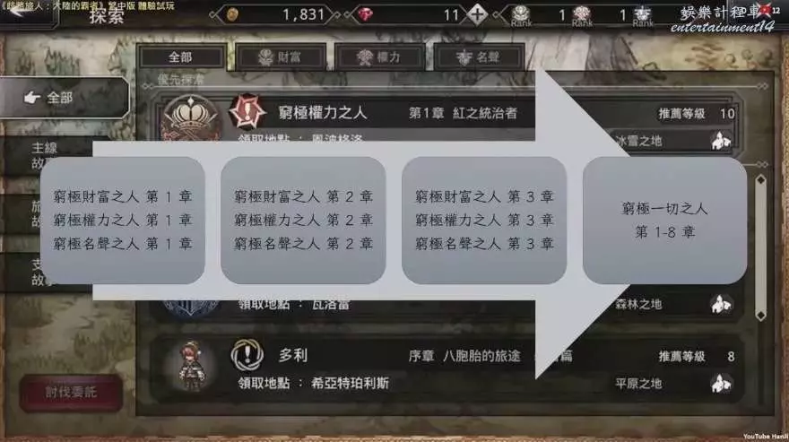 推薦優先完成每個勢力的第一章,再接著去每個勢力的第二章,例如先打財富第一章,再來打權力第一張,然後名生第一張,接著再進到各勢力的第二張,以此類推。