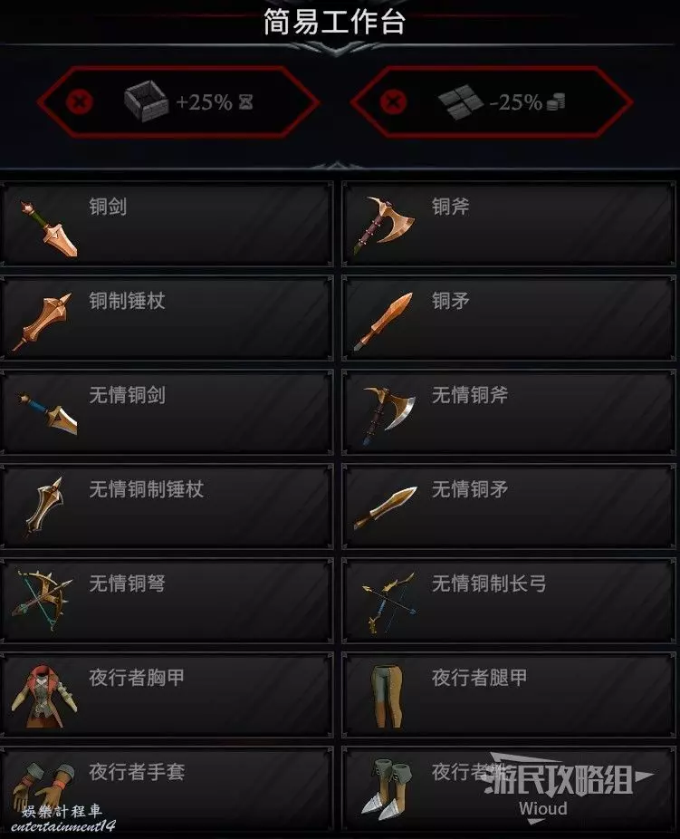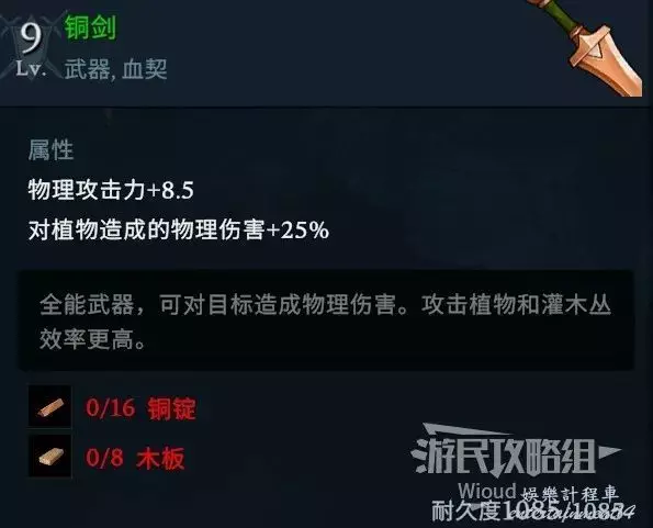 放置建築“簡易工作台”即可解鎖銅制系列武器的製作許可權。
