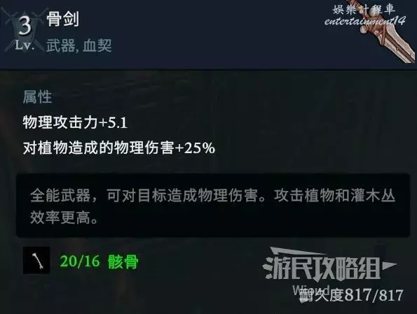 完成開始的收集30個骸骨的任務解鎖配方,直接在角色的製造欄裡製作。