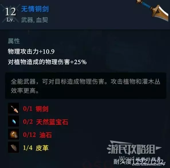 1個銅制武器樣板(如無情銅劍就需要一把普通銅劍)。